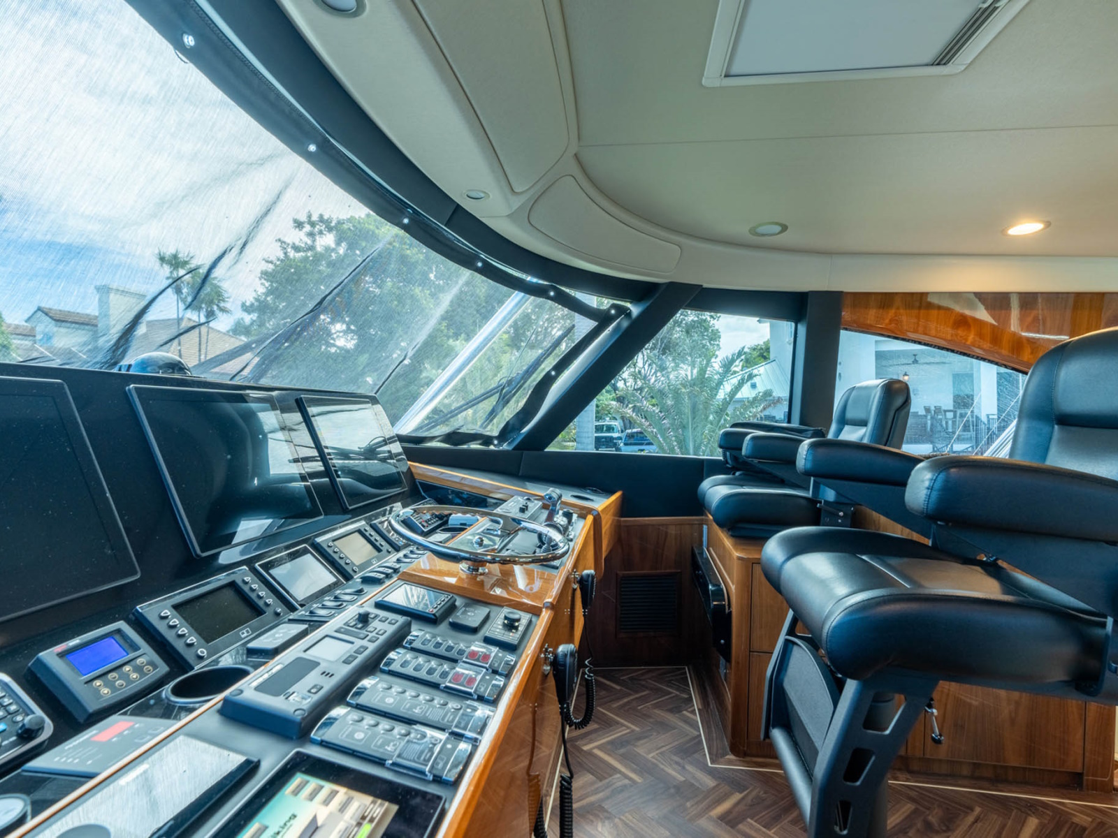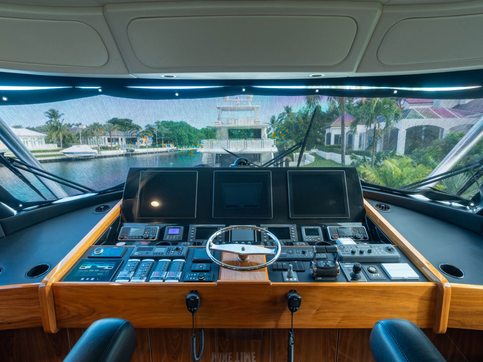 Engine choices include packages from MAN, CAT and MTU. With twin 2002MHP MTUs, the 68 runs over 40 knots and cruises in the mid-30s. Atlantic Marine Electronics and Palm Beach Towers offer fully integrated electronics and tower packages for turnkey setup.