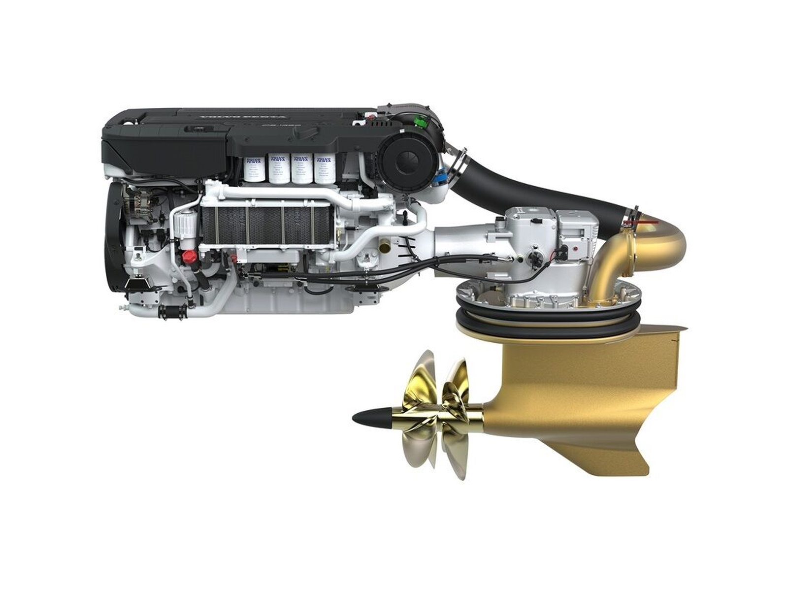Volvo Penta D13-IPS was designed to deliver powerful performance, excellent maneuverability, unparalleled comfort on board, and longer range with less fuel consumption and emissions. The perfectly matched engine, transmission and drive - characterized by twin counter-rotating propellers - create an unmatched experience on the water. The robust engine was built to last with a rigid cast iron cylinder block and cylinder head, offering reliability and long-term durability. The entire package is integrated from helm to prop through the Electronic Vessel Control (EVC) with the option for experience-enhancing add-on features such as Glass Cockpit, cruise control and more.