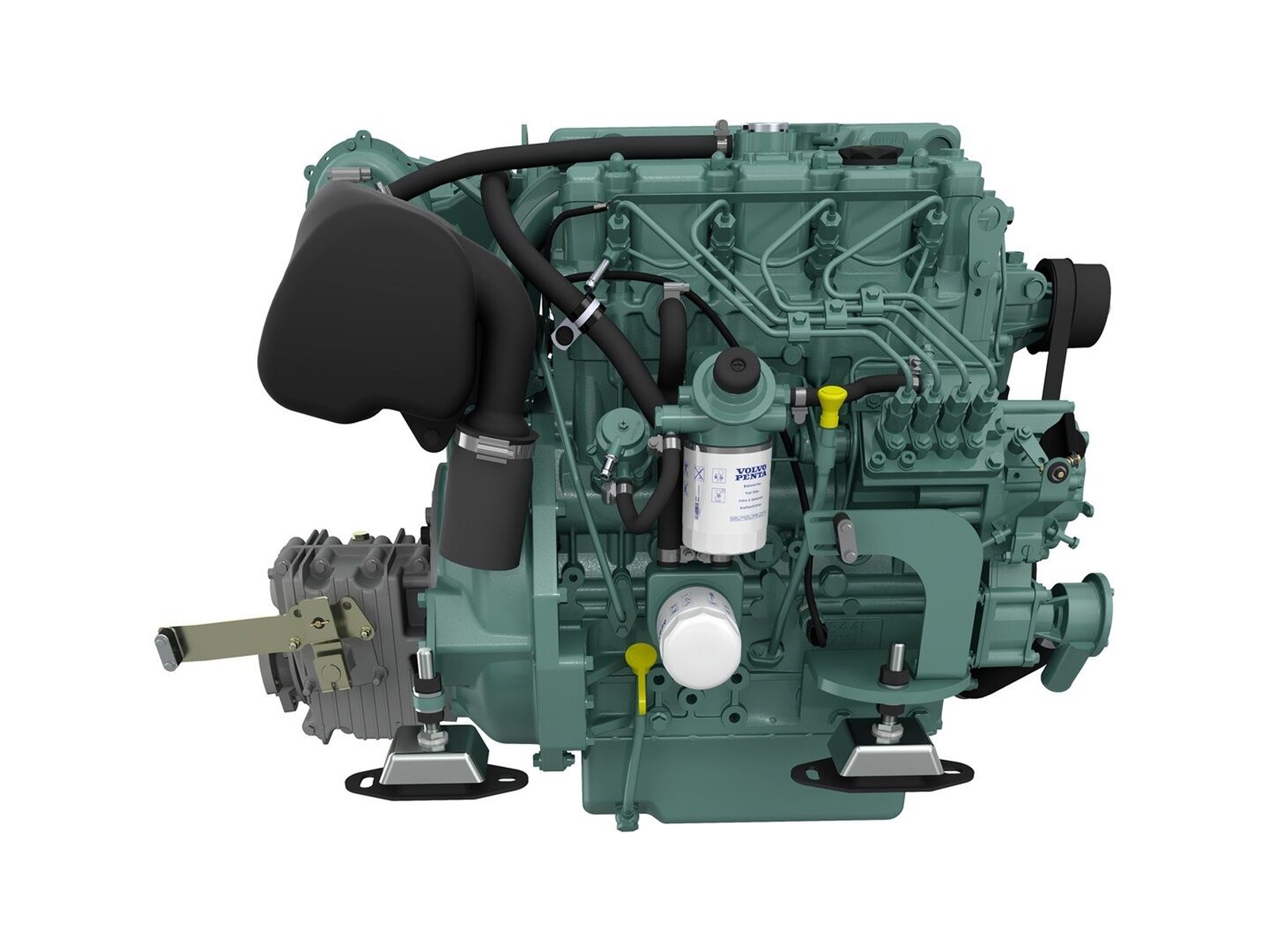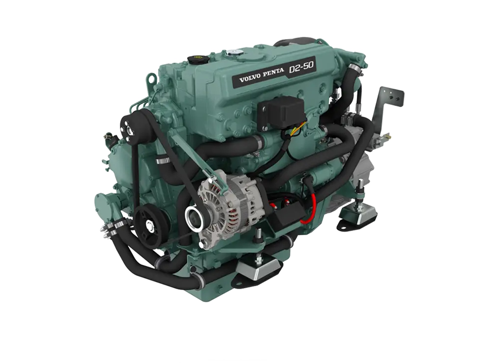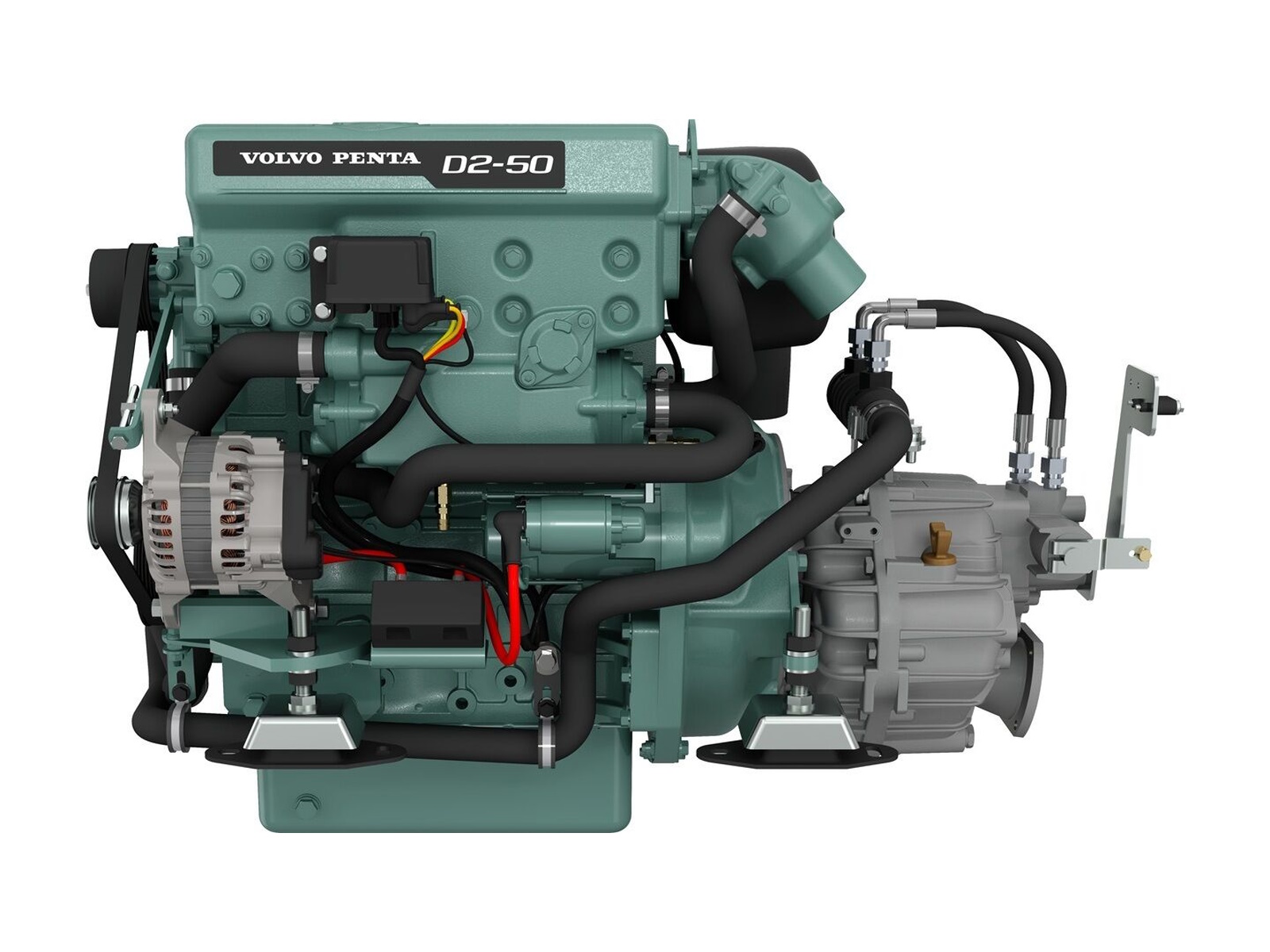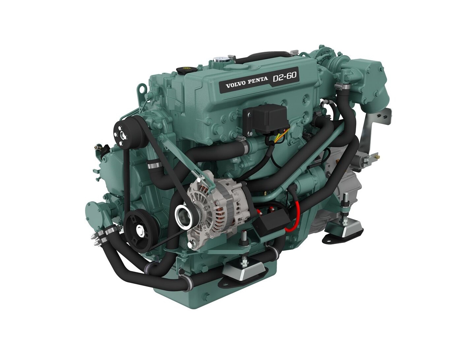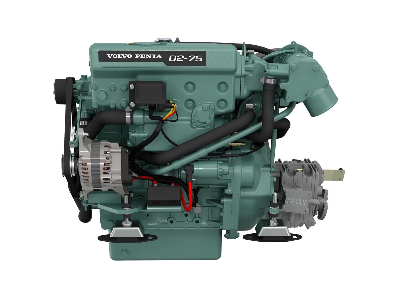 Volvo Penta D2 is an in-line 4-cylinder, 2.2-liter, naturally aspirated diesel engine with a camdriven in-line injection pump, and freshwater cooling. With low cruising rpm, the engine operates quietly with reduced vibrations.