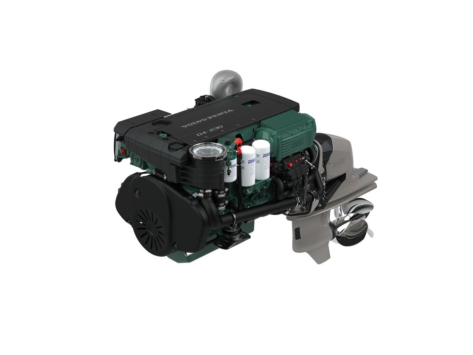 Volvo Penta Aquamatic Sterndrive D4-DPI is an integrated package, powered by the in-line 4-cylinder, 3.7-liter, common-rail diesel engine with double overhead camshafts and turbo. Working together with the optimized DPI DuoProp drive, the package delivers strong diesel performance along with reduced emissions.