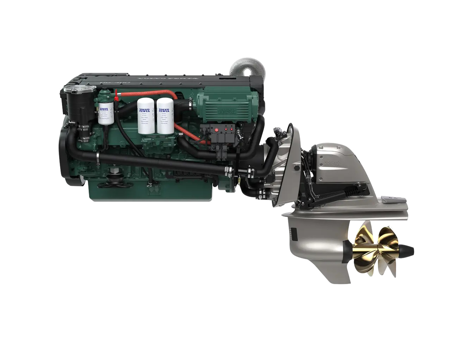Volvo Penta Aquamatic Sterndrive D6-DPI is an integrated package, powered by the in-line 6-cylinder, 5.5-liter, common-rail diesel engine with double overhead camshafts, turbo, and supercharger. Working together with the optimized DPI DuoProp, the package delivers strong diesel performance along with reduced emissions.