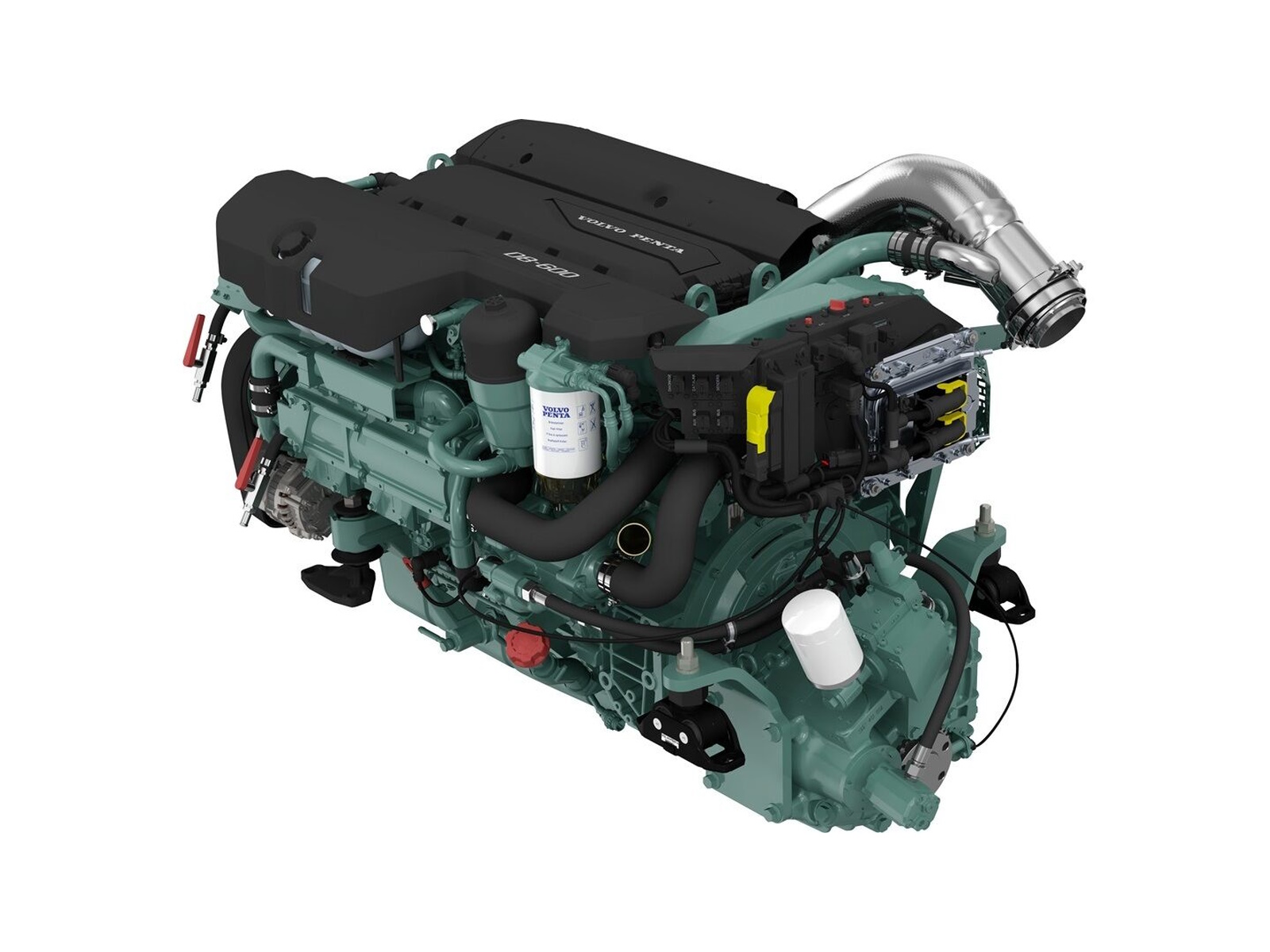 The Volvo Penta D8 is an in-line 6-cylinder, 7.7-liter diesel engine that utilizes common-rail fuel injection, an overhead camshaft, a twin-entry turbo, and a supercharger. The engine provides enhanced maneuverability at low speeds, a high power-to-weight ratio, and reduced fuel consumption.