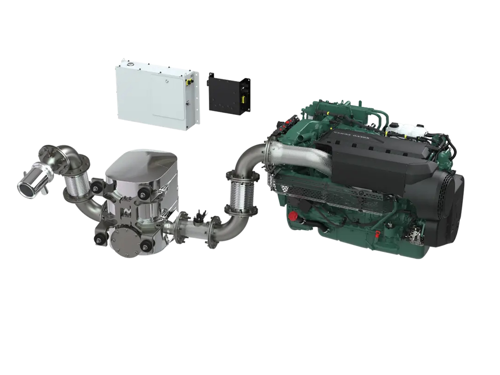 Volvo Penta D8 MH IMO III/EU Stage V Marine is a variable speed, in-line 6-cylinder, 7.7-liter diesel engine featuring common-rail fuel injection, an overhead camshaft, and a twin-entry turbo. This design contributes to efficient operating performance, along with lower emissions and reduced noise levels. It's engineered to handle high back pressure and high-sulfur fuel (1,000 ppm). The SCR (Selective Catalytic Reduction) exhaust aftertreatment system is designed for an optimal fit. The SCR unit, which also functions as a silencer, reduces noise by 35-40 dBA. Volvo Penta meets IMO III and Inland Waterway Stage V exhaust emission standards while maintaining consistent fuel consumption. Thanks to the SCR system, the engine power output remains unchanged.