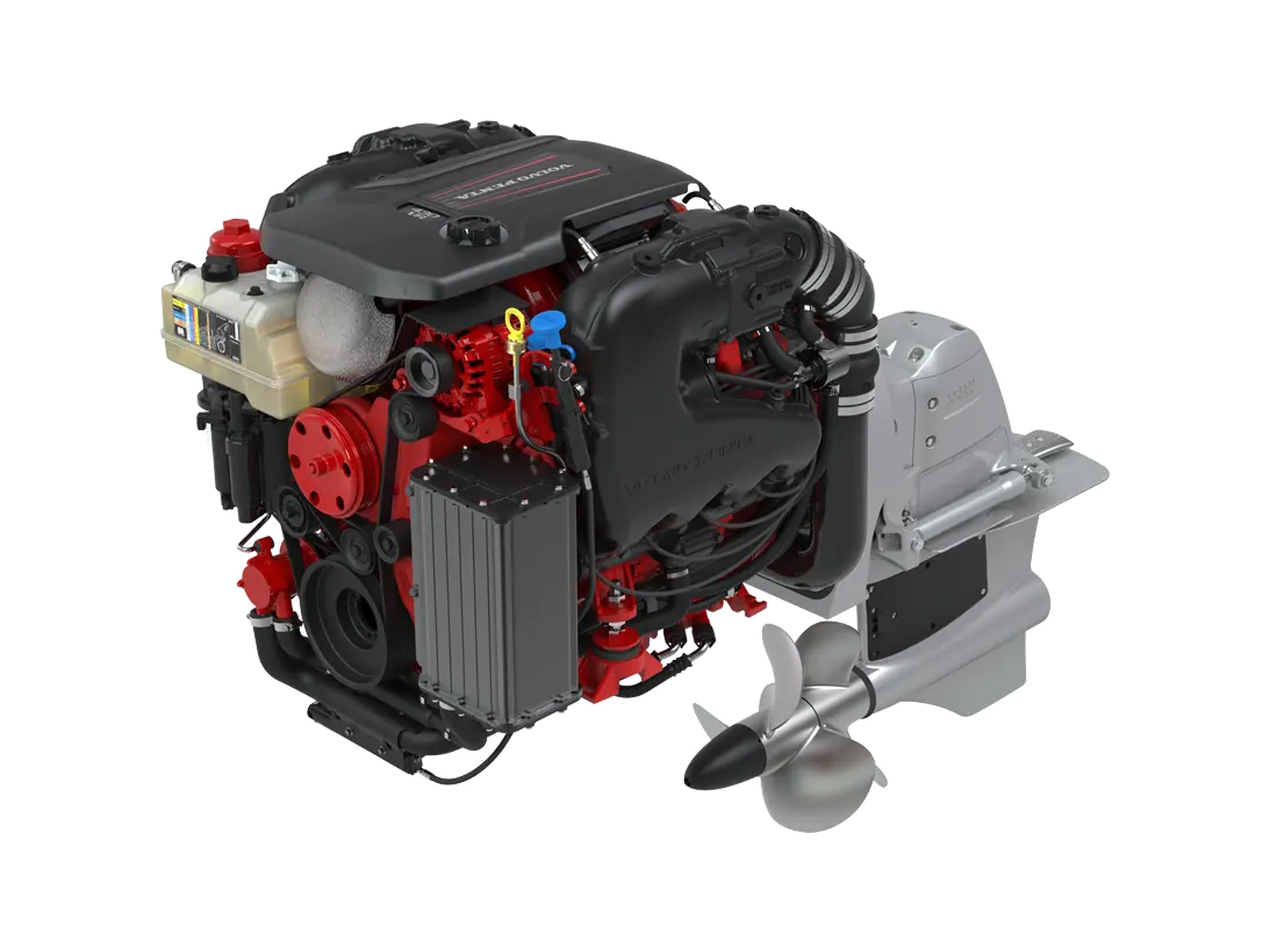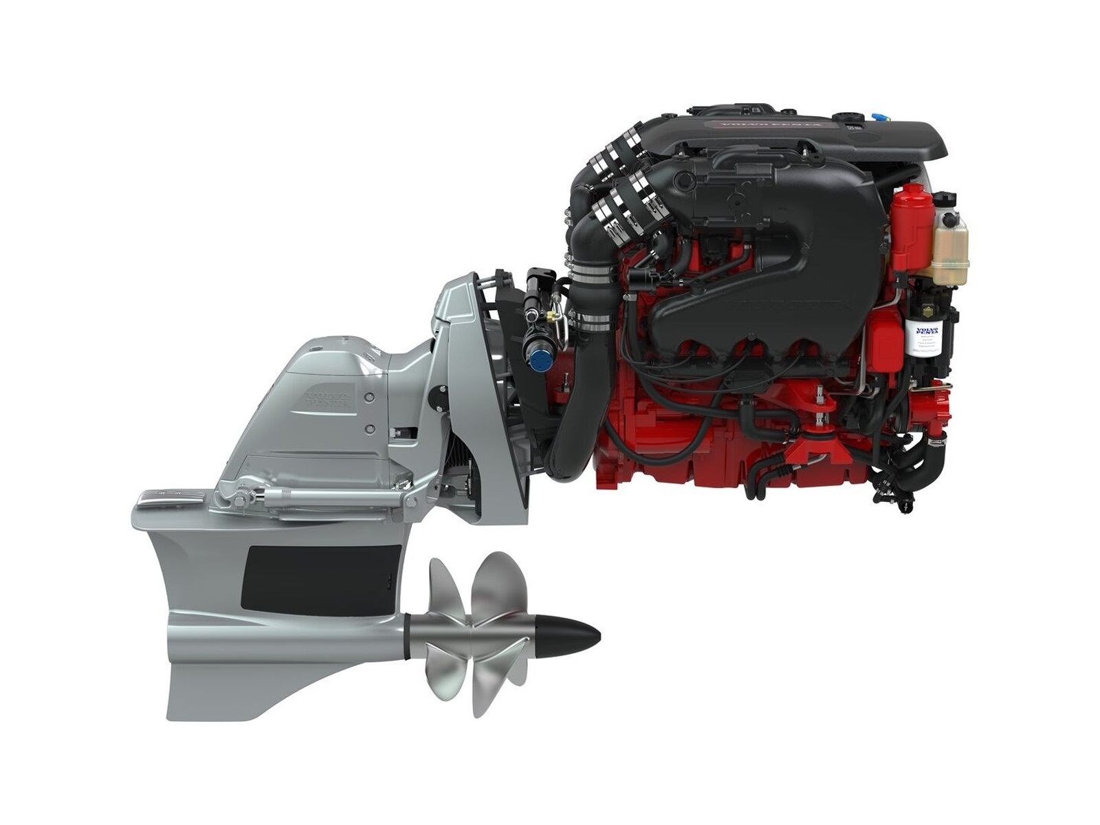 Volvo Penta Forward Drive V8‐FWD is a fully integrated package, powered by the 8‐cylinder, 5.3‐liter or 6.2-liter, freshwater‐cooled, direct‐injected gasoline engine with catalyst. Paired with the well-matched FWD Duoprop drive, this package provides versatility, reduced noise levels, lower emission levels, and strong acceleration.