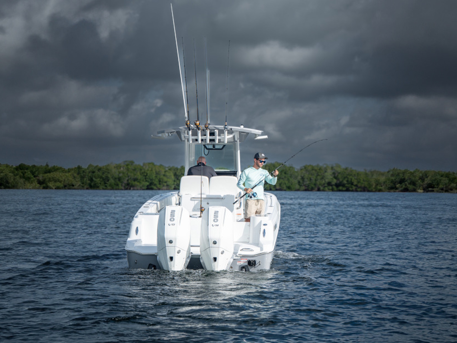 • Helm seating. Leaning post w/backrest & rod holders