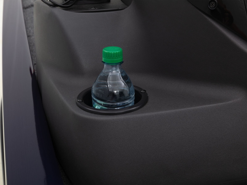 - Sleek, 1-piece rotomolded console w/more leg room, open storage compartment, tinted windscreen, built-in drink holder, 12V outlet & mobile phone holder w/bungee cord
