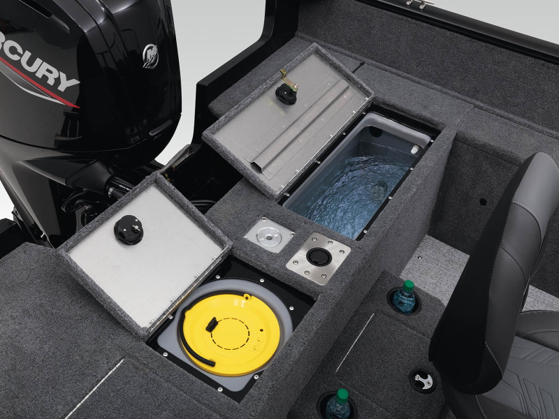 • Aft 29-gal. (109.78 L), 50" (1.27 m) aerated livewell w/removable bait bucket, timer, recirculator & pump-out system