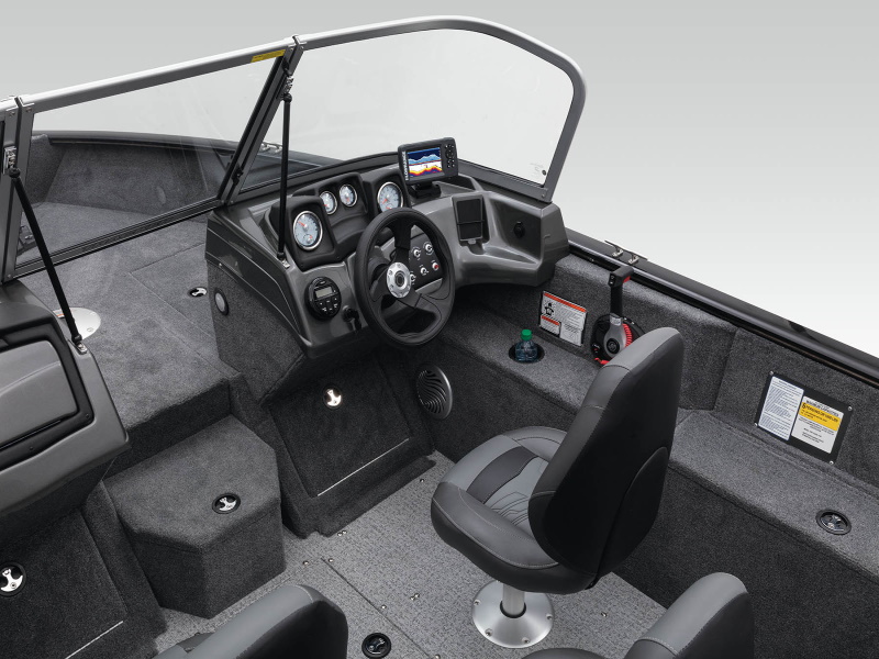• All-welded, 2-piece .100 aluminum Deep V hull w/wide beam & stable bottom for a smoother, drier ride in rough waters