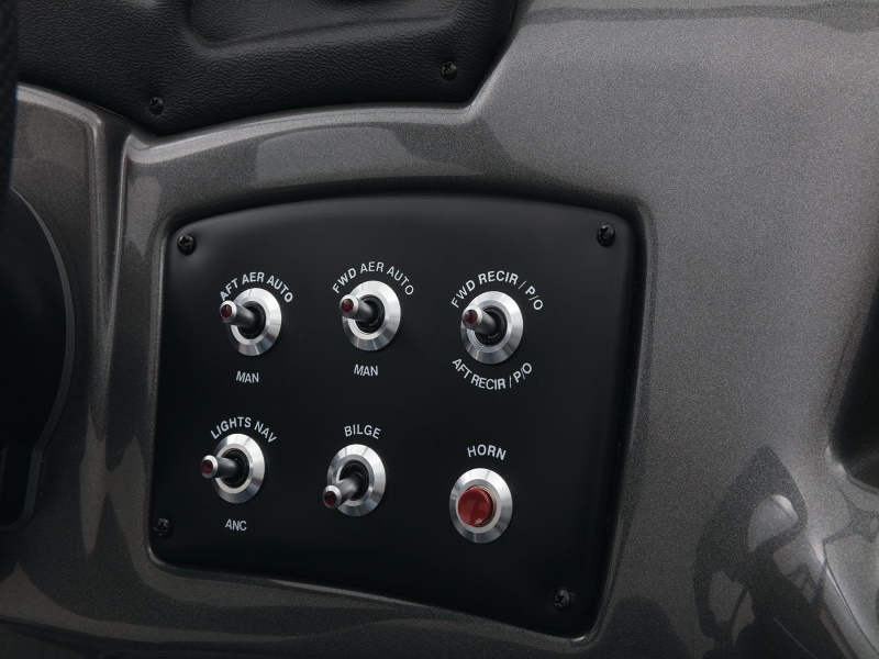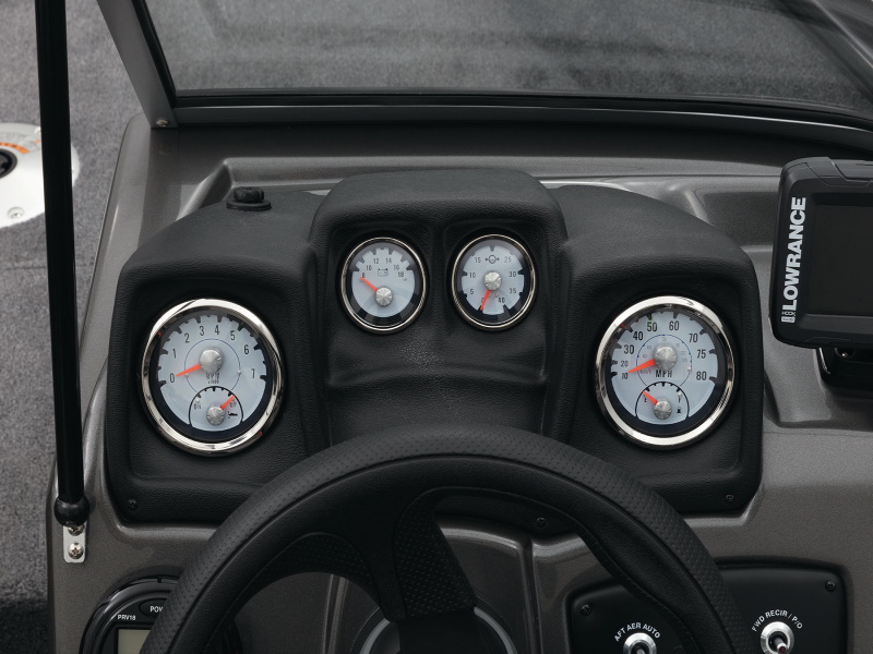 - Illuminated speedometer, tachometer, voltmeter, fuel gauge, water pressure gauge & trim gauge