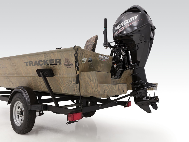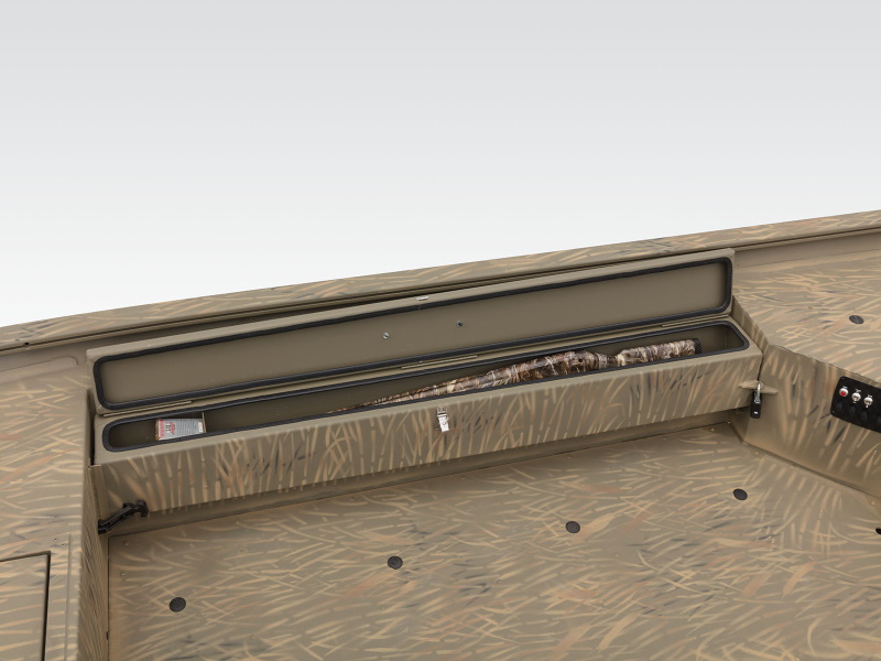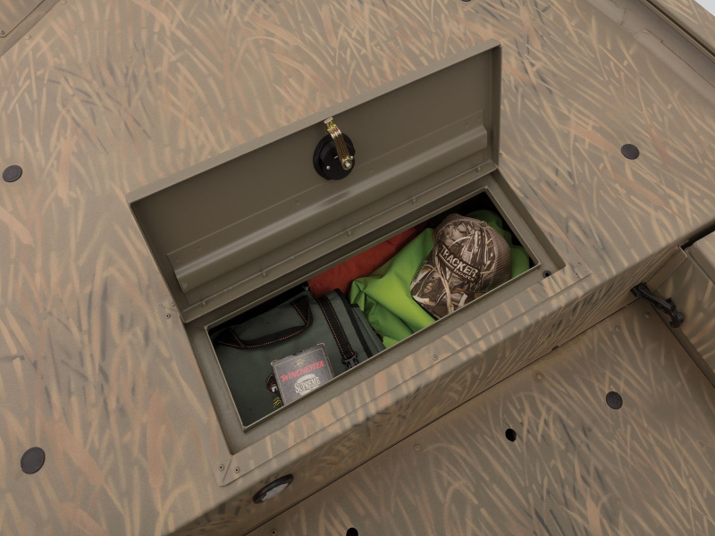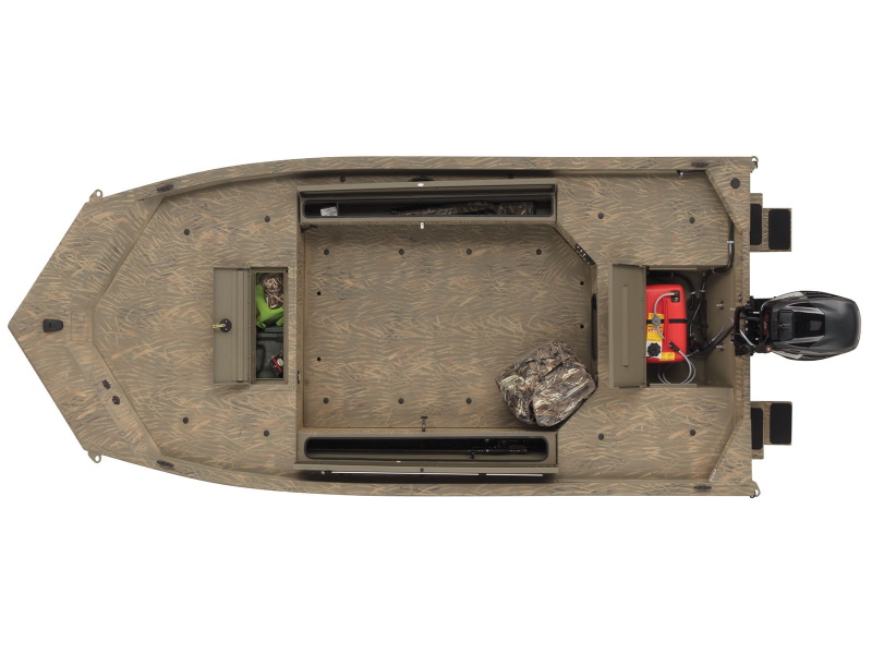 Built tough with an ideal layout for waterfowling, the TRACKER® GRIZZLY® 1654 T Sportsman is a duck-hunting machine. It sports a lockable bow deck storage compartment, port rod/gear box and lockable, removable starboard gun box. The unitized, all-welded stringer, transom and Mod V hull provide great durabilty and a smooth, dry ride. And the integrated transom sponsons improve shallow-water performance.