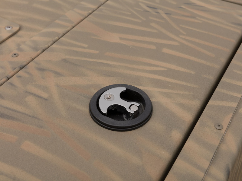 • Stake-down eyes at 4 corners of the deck permit setting of anchor poles (not included) to hold boat in place