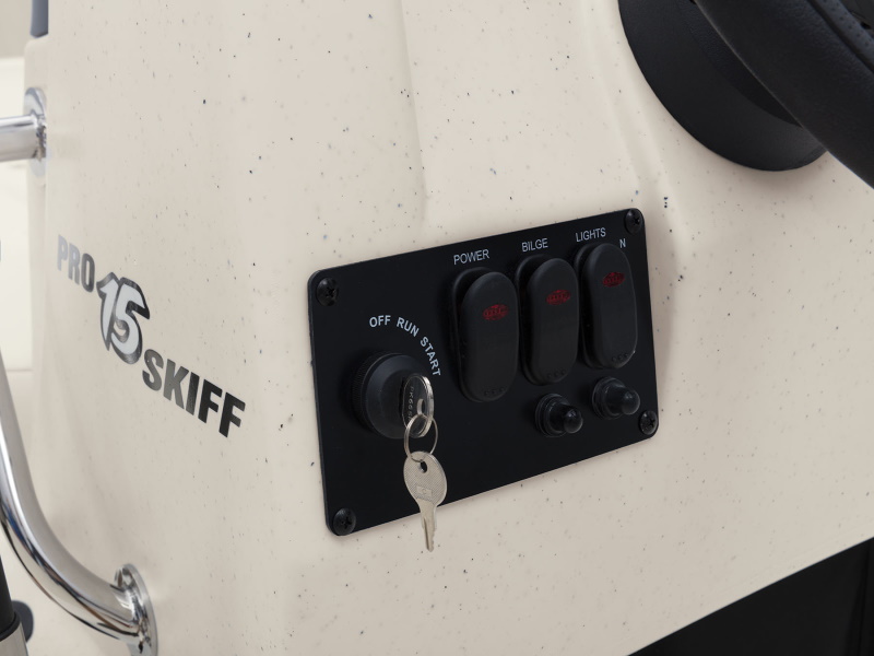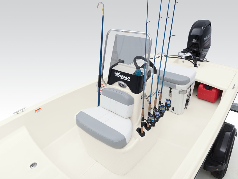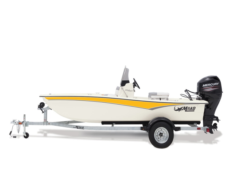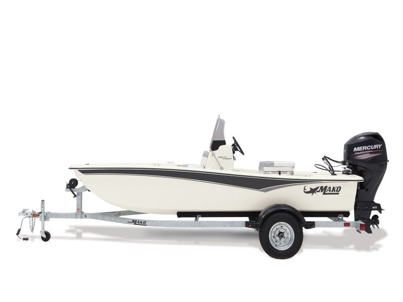 The strong design of the Pro Skiff 15 consists of the hull and deck liner that are chemically and mechanically bonded together, and then filled with expanding foam to create one unitized structure with excellent flotation and rigidity. It comes standard with a hot-dipped galvanized trailer, a Mercury outboard and the industry-leading MAKO Assurance 5+Life warranty.