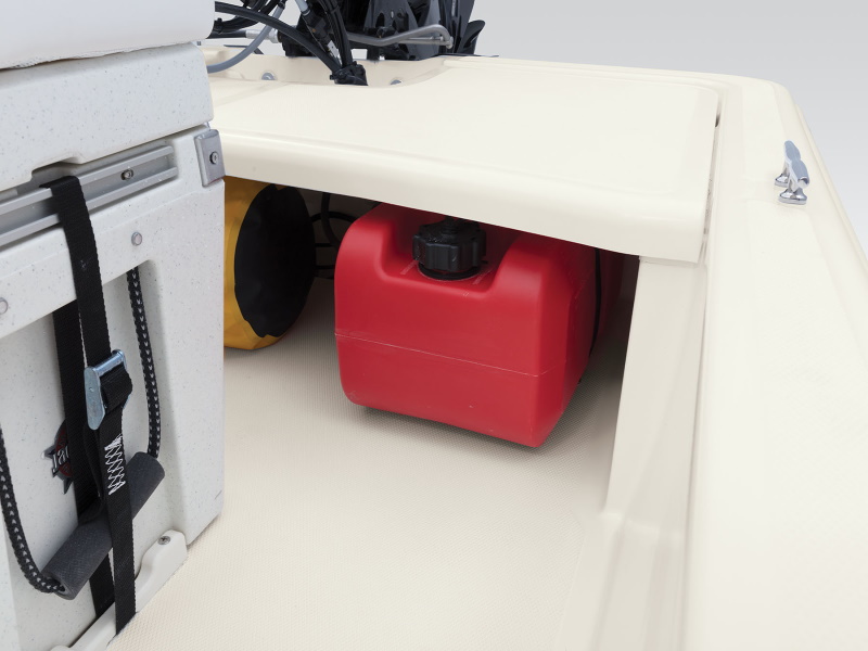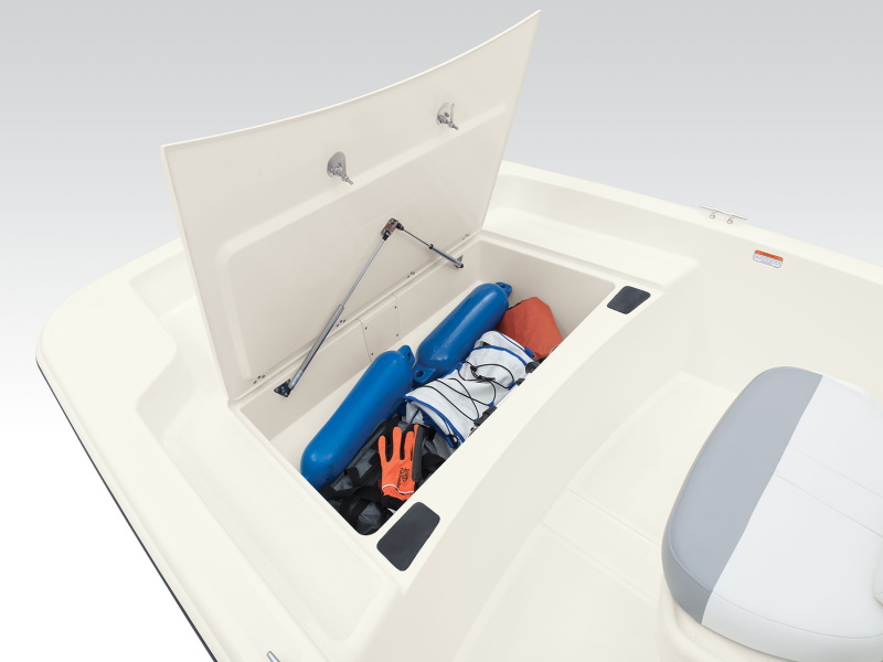 - Raised, closed-molded aft fishing platform w/patterned non-skid surface & open storage space below