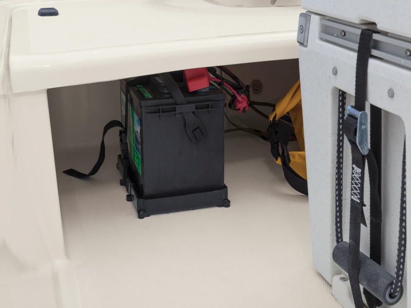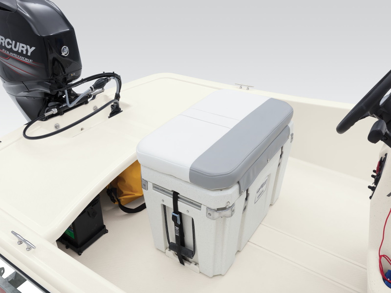 - Molded center console w/integrated 8-gal. (30.28 L) baitwell, molded-in grab handles & hinged padded seat cushion & back