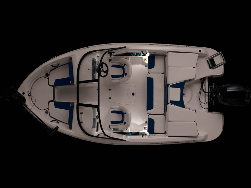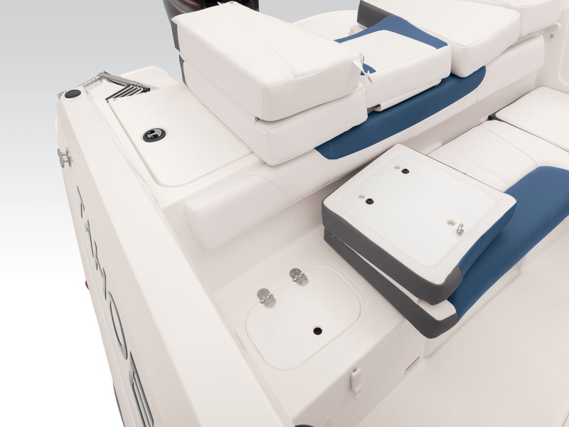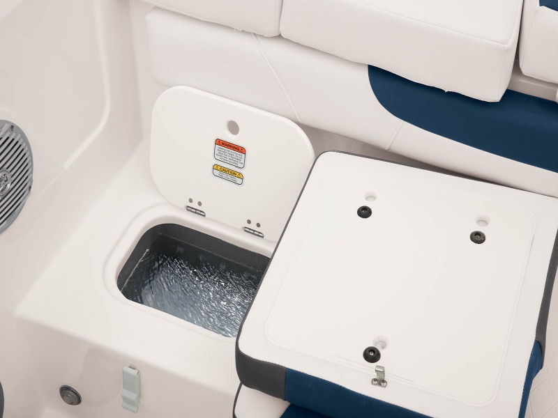 - Aft bench seat w/insulated port storage compartment, built-in cooler recess & starboard livewell