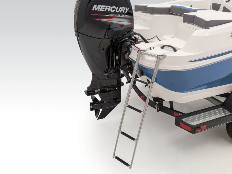 - Aft port & starboard swim platforms w/top-mounted, fold-down 4-step boarding ladder & integrated grabrail