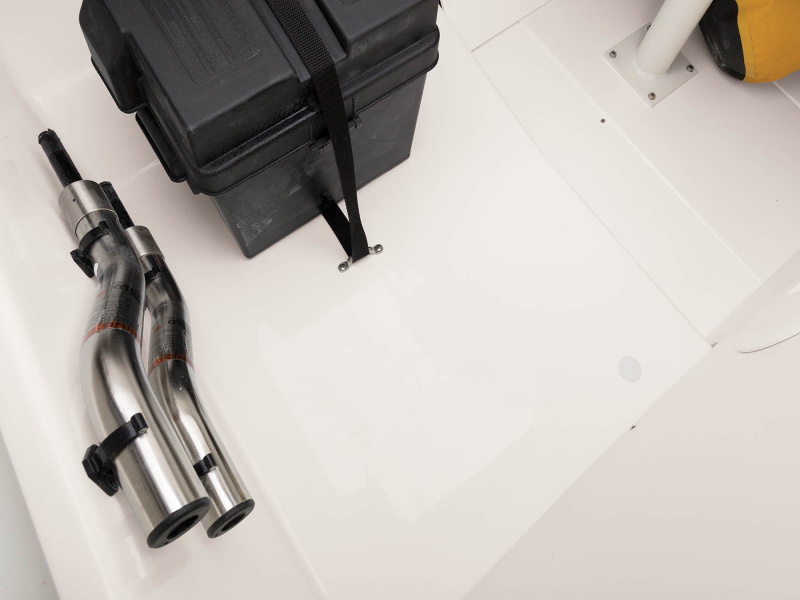 - Finished gelcoat full-length fiberglass foam-filled stringer system bonded to the hull