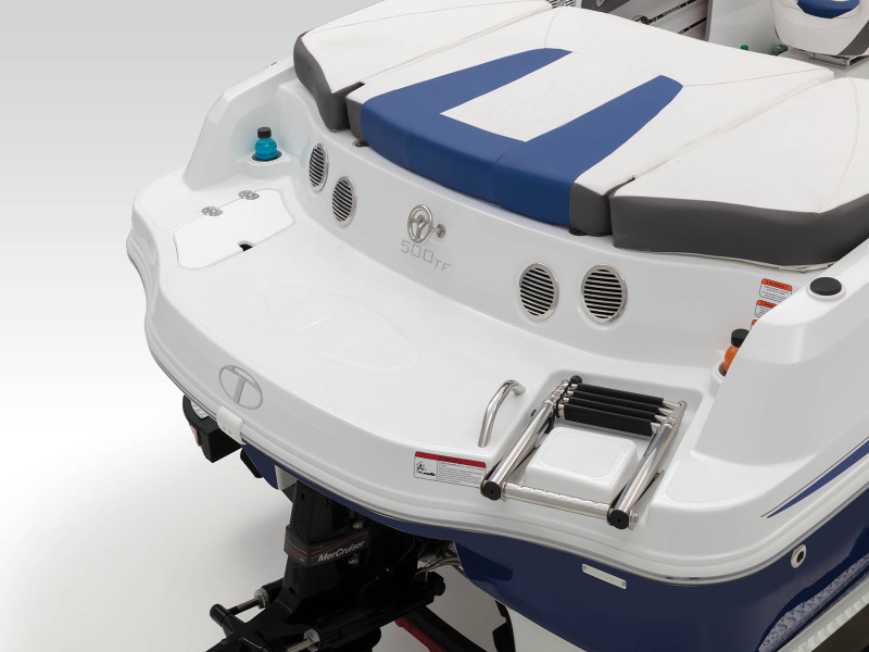 Performance-wise, the 500 TF combines our exclusive POWERGLIDE® hull design with a spirited MerCruiser® sterndrive, resulting in quick holeshots, nimble handling and impressive top-end for cruising and watersports (check out that ski tow ring!). For comfort, plush seating throughout, as well as a removable cooler for keeping drinks cold, are ready.