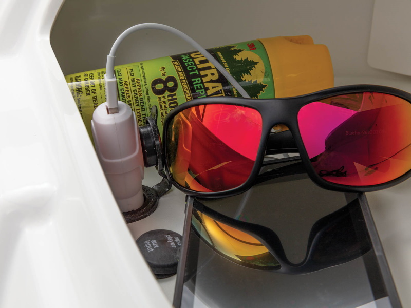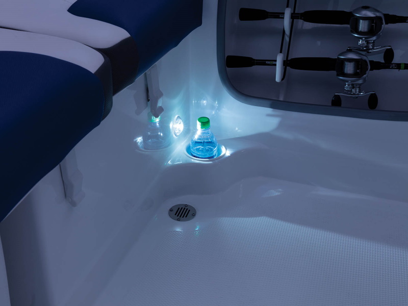 For slower—yet just as exciting—fun, you can deploy the trolling motor, set up the fishing chairs at the fore and aft positions and fill up the livewell.