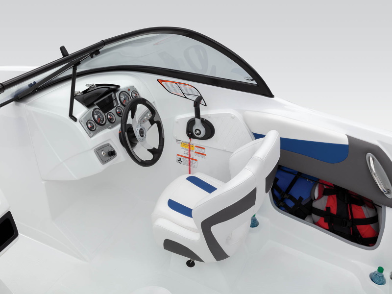 - Helm console w/speedometer, tachometer, fuel gauge, trim gauge, oil pressure gauge & engine temperature gauge
