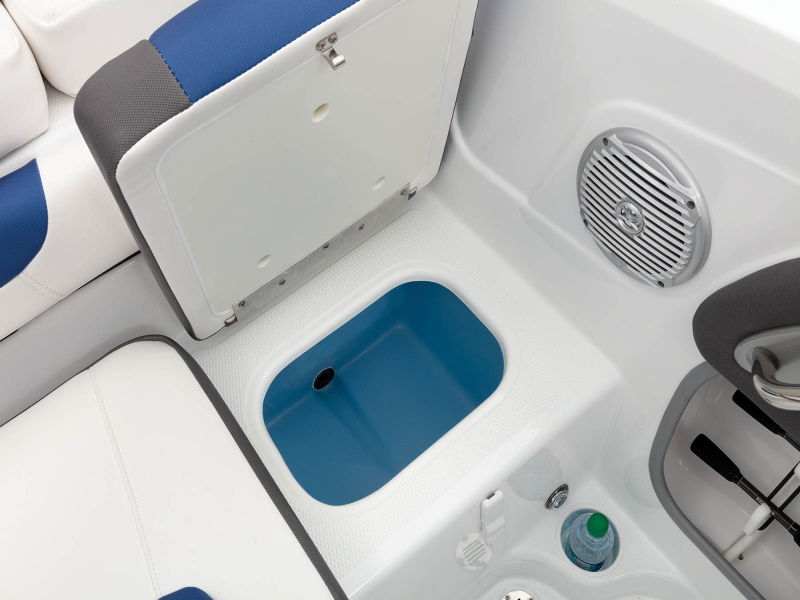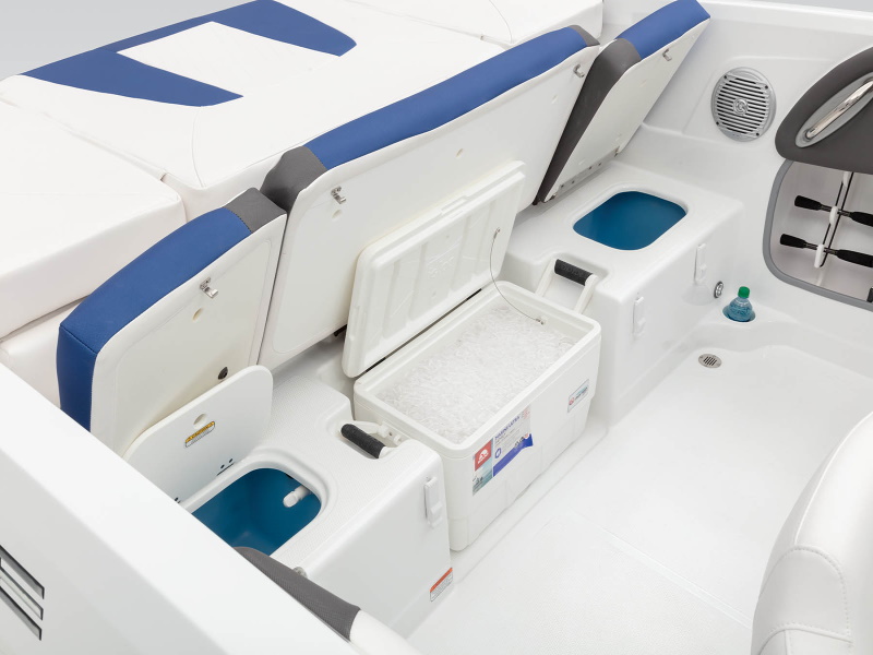 - Aft bench seat w/insulated port storage compartment, removable 36-qt. (34.07 L) cooler & starboard livewell