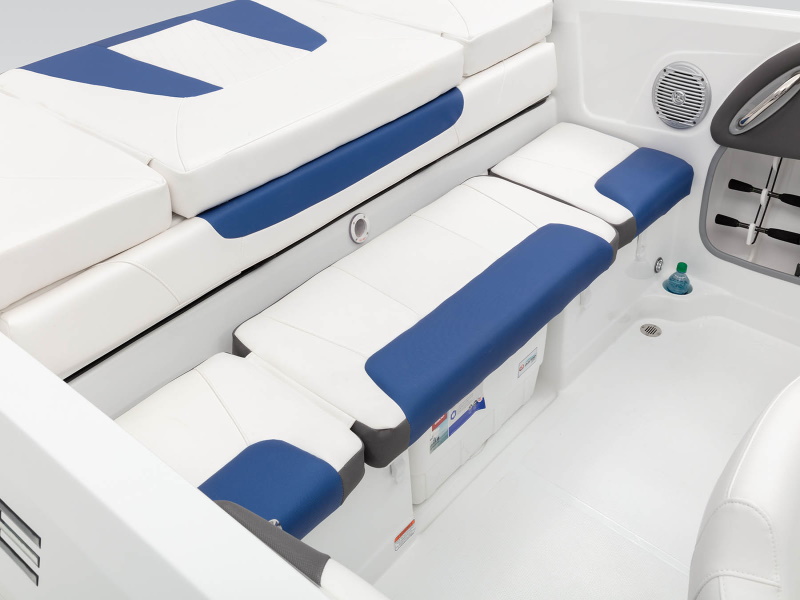 - 29-oz. (.82 kg) expanded polyester-back marine-grade UV-resistant upholstery w/color-keyed accents
