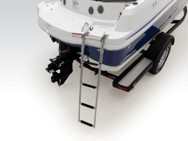 - Full-width oversized aft swim platform w/top-mounted, fold-down 4-step boarding ladder, integrated grabrail & storage compartment