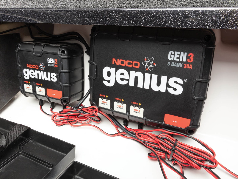 - Two 750 GPH (2,839.06 LPH) recirculator pumps w/timers (1 for baitwell, 1 for livewell)