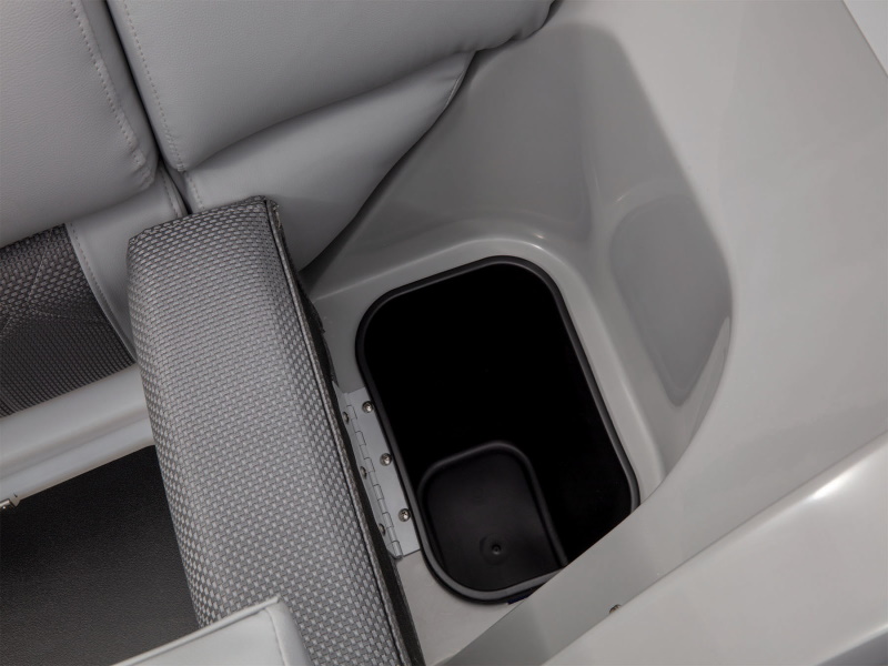 - Easy-access trash receptacle in bow starboard lounge