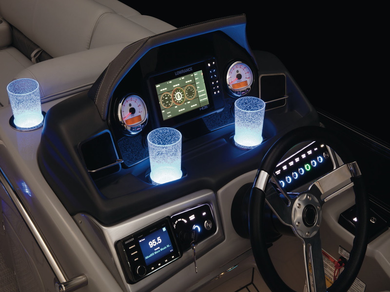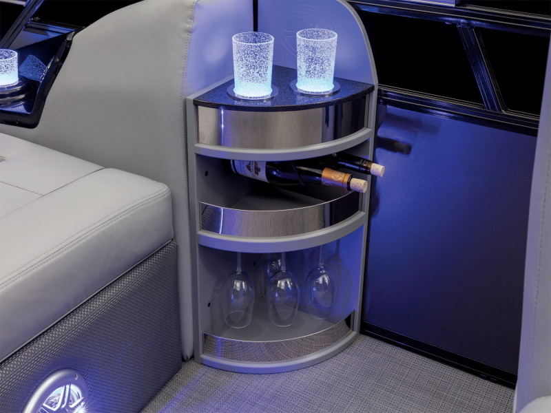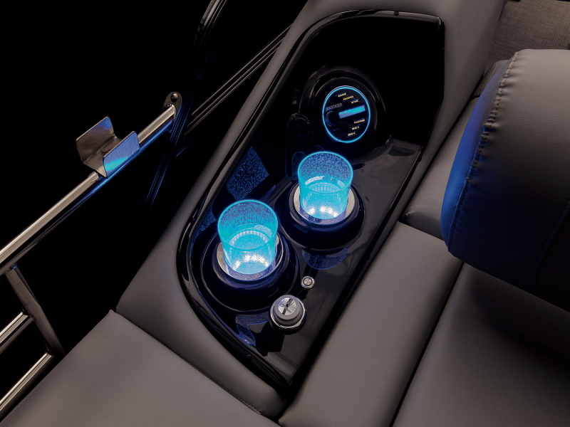 - Blue LED courtesy lighting throughout interior—around lounge bases, drink holders & speakers