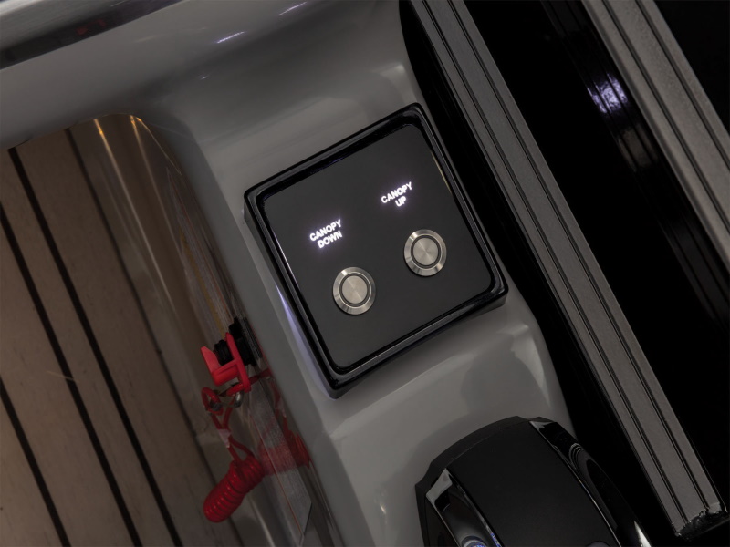- 10' (3.05 m) color-keyed Bimini top w/NEW power up & down arm, DIAMOND COAT™, LED courtesy lights & protective boot