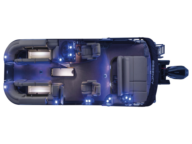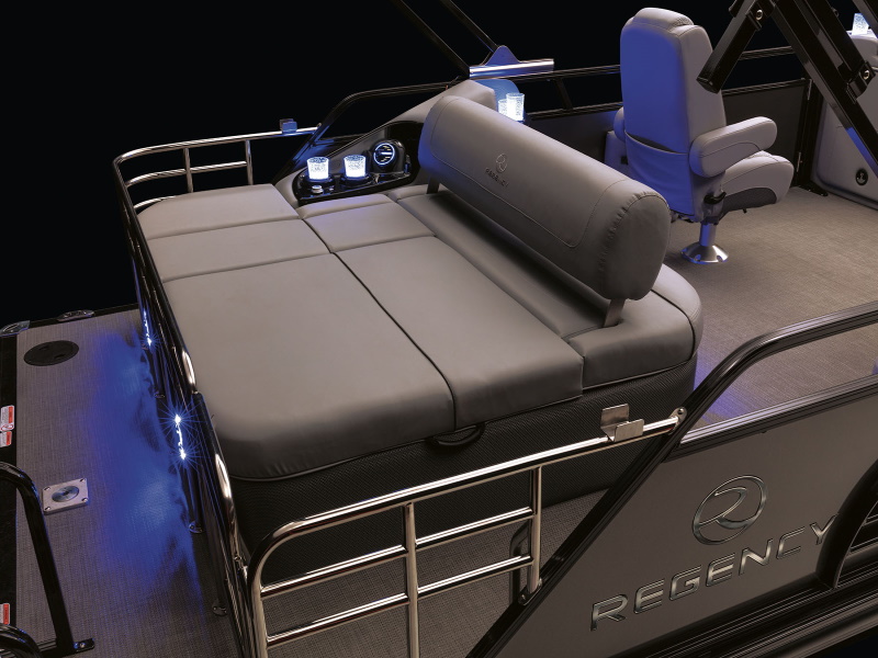 The REGENCY® 230 LE3 Sport brings together style, spirit and sophistication in a luxury pontoon boat package that is ready for watersports or relaxation.