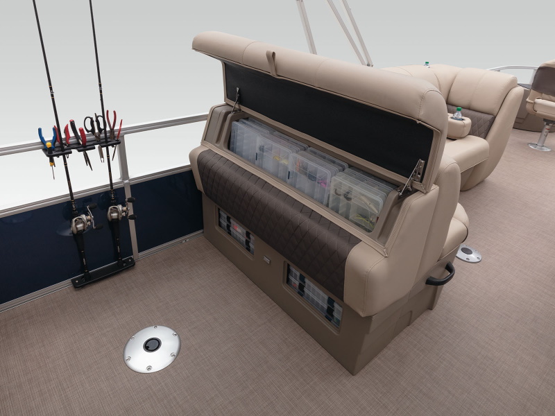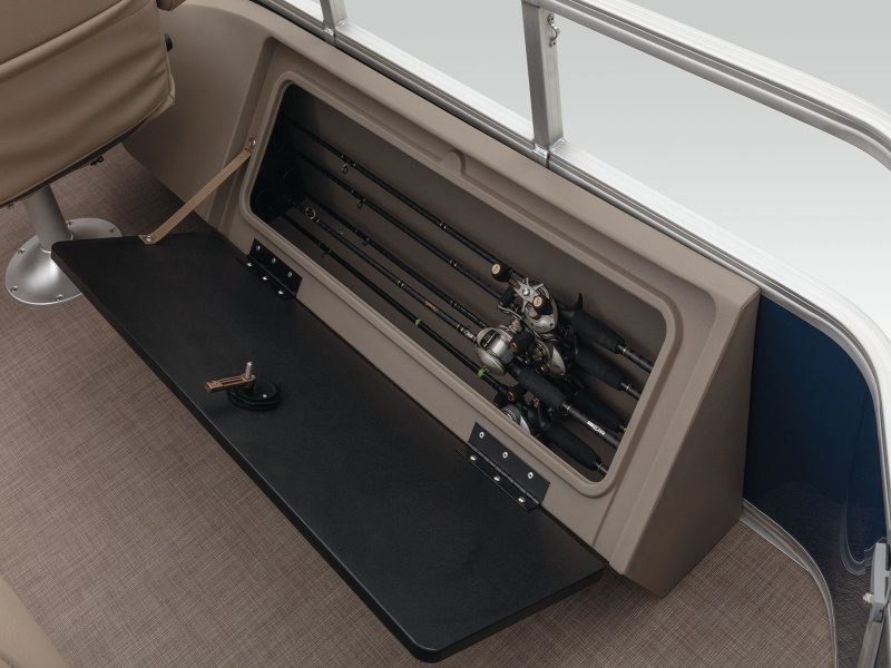 - Molded aft starboard lockable rod box for 6 rods to 7' 6" (2.29 m) w/lid, rod tube holders & organizer