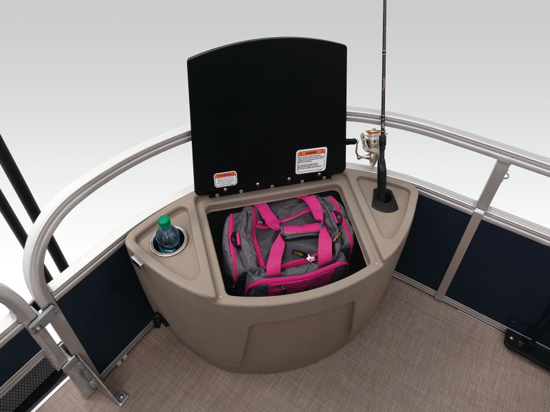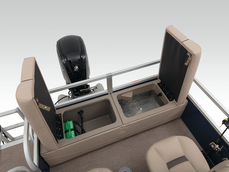 - Aft port 16-gal. (60.57 L) aerated livewell w/removable bait bucket & shutoff valve