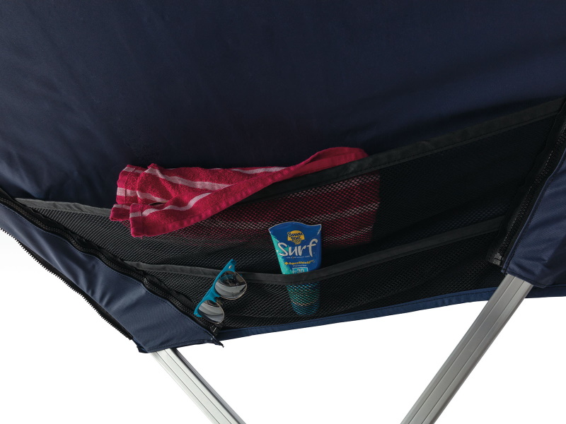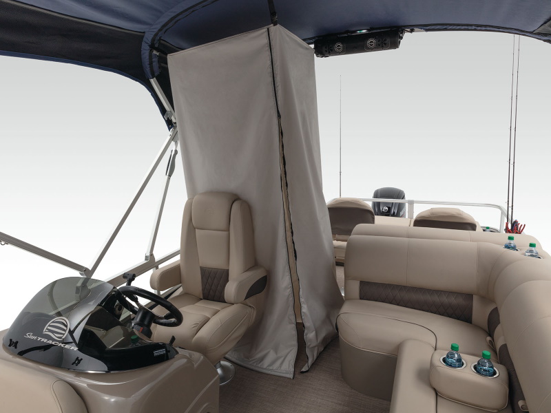 - 11' (3.35 m) color-keyed Bimini top w/LED courtesy lights, protective boot & accepts optional drop-down changing curtain