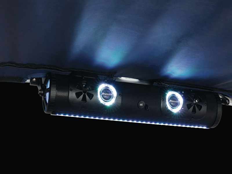 - Bazooka® Party Bar stereo & speakers in the Bimini top