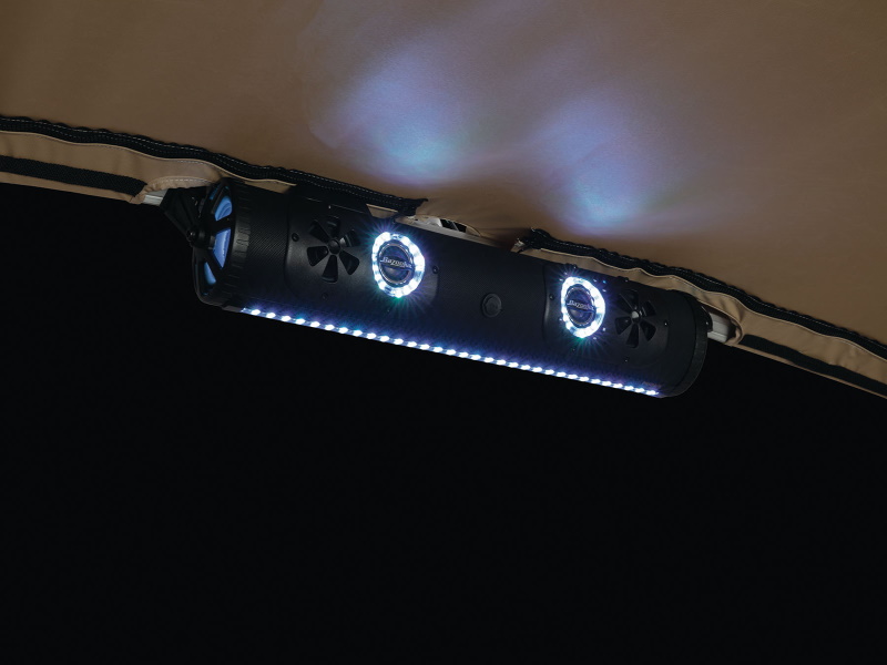 • Bazooka® Party Bar stereo & speakers in the Bimini top