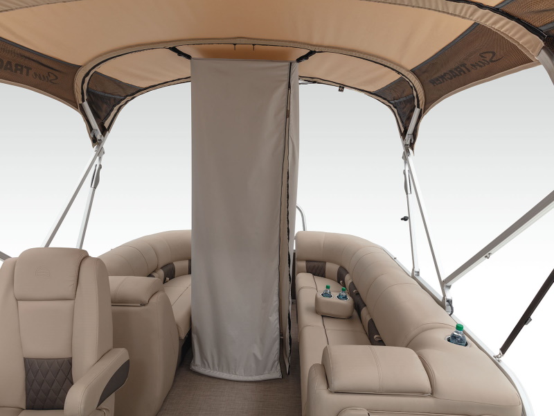 • 11' (3.35 m) color-keyed Bimini top w/LED courtesy lights, protective boot & accepts optional drop-down changing curtain