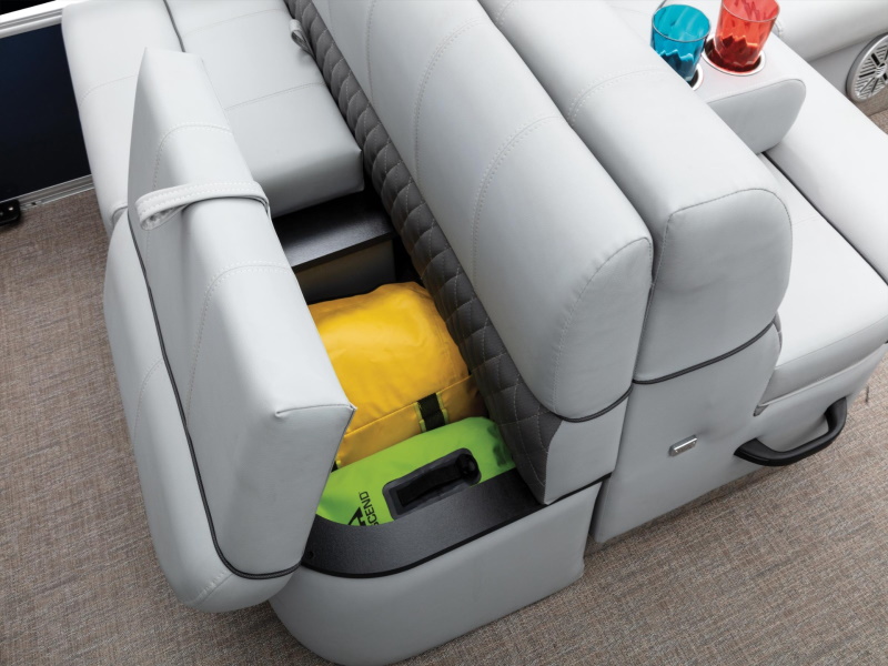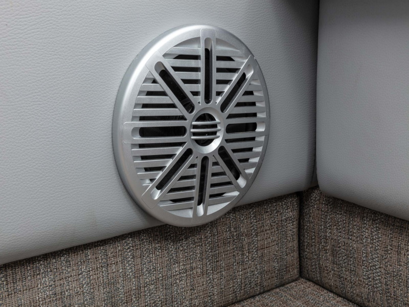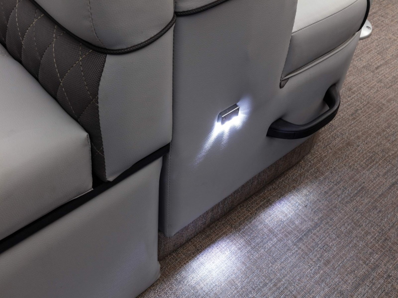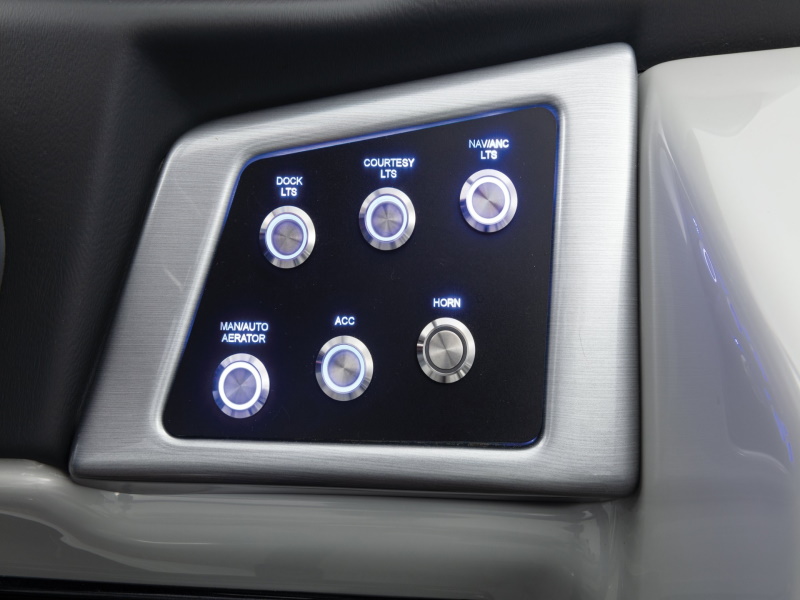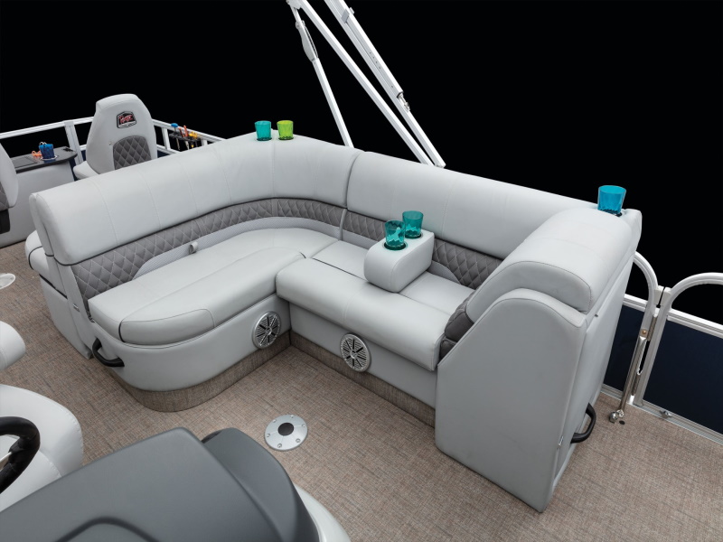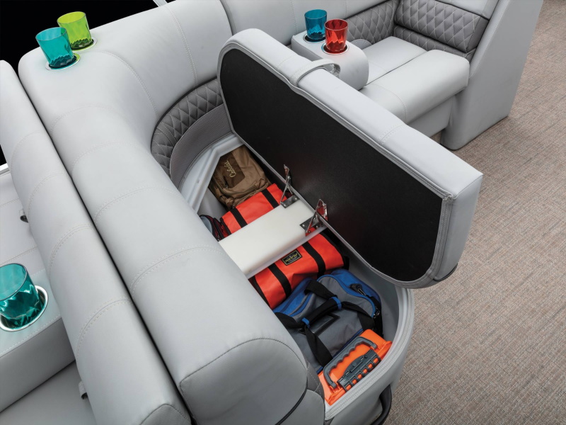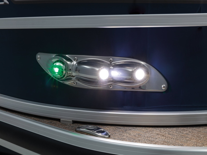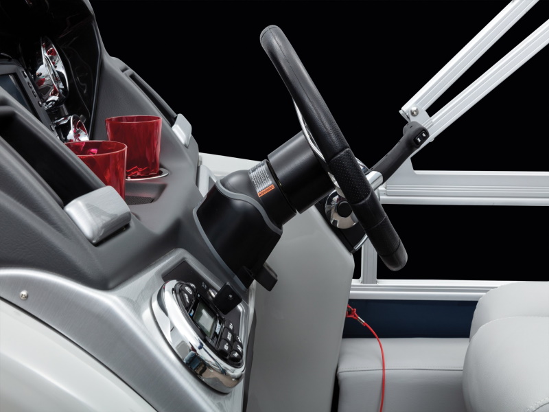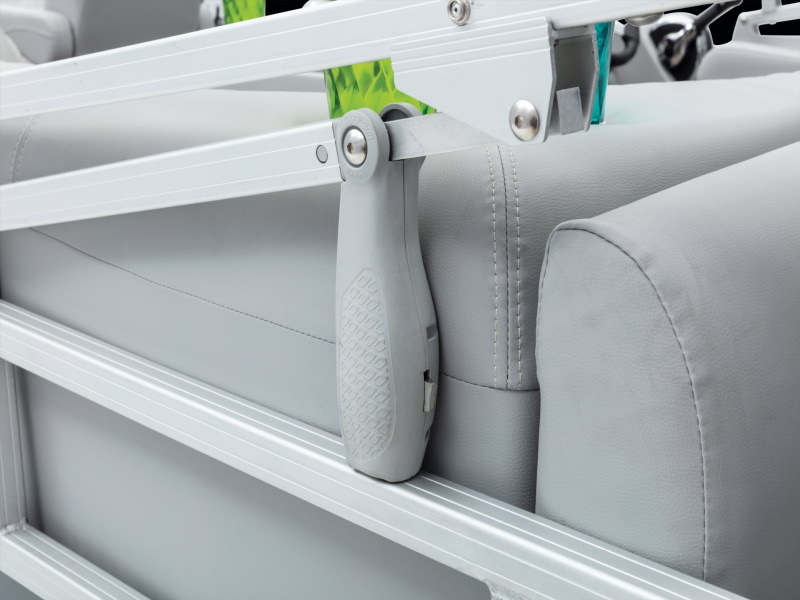 - Easy-to-deploy color-coordinated 11' (2.74 m) Bimini top w/ adjustable hold-down arm, LED lighting, storage pockets & matching protective boot w/ logo
