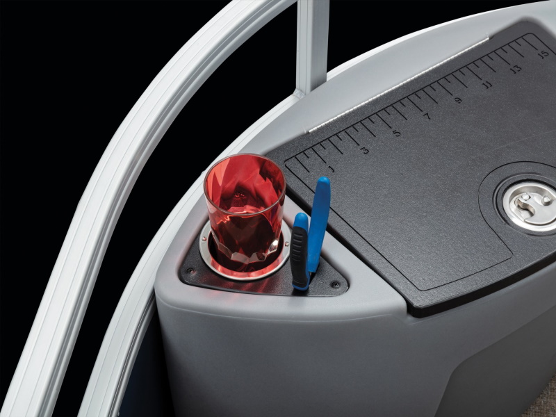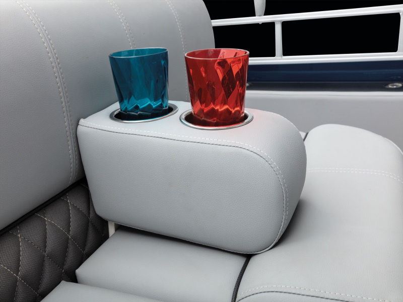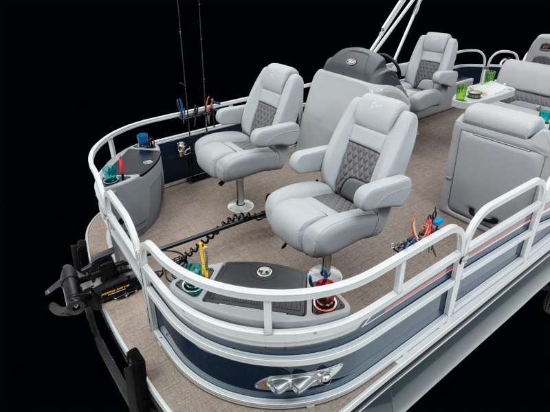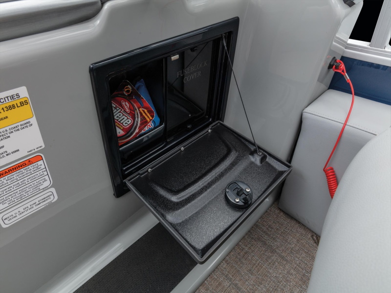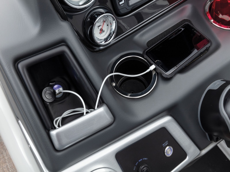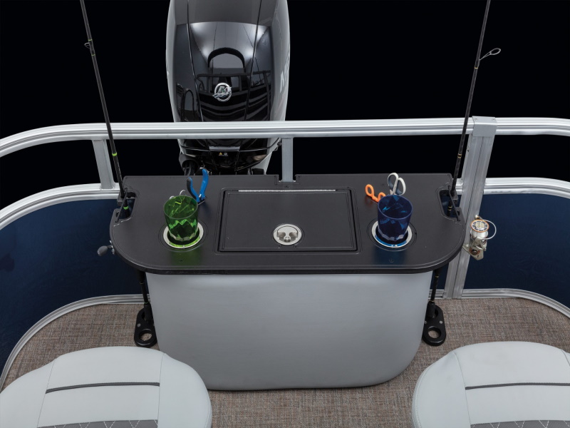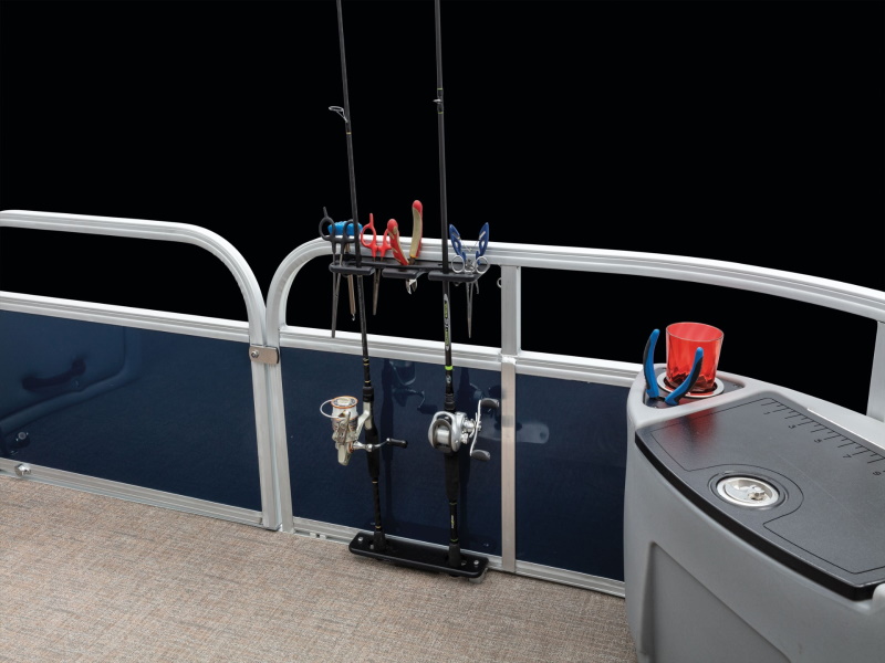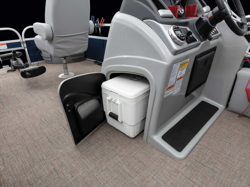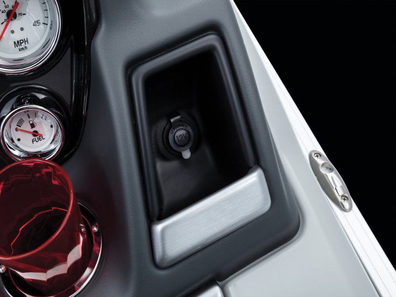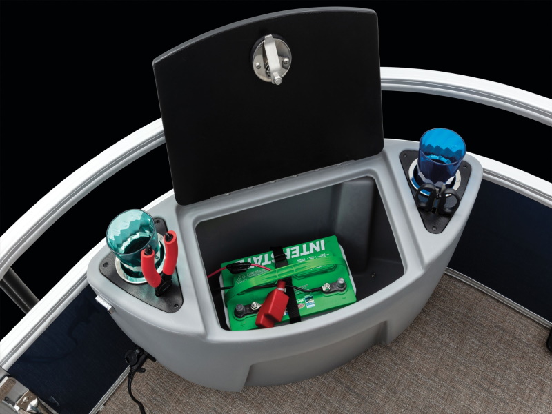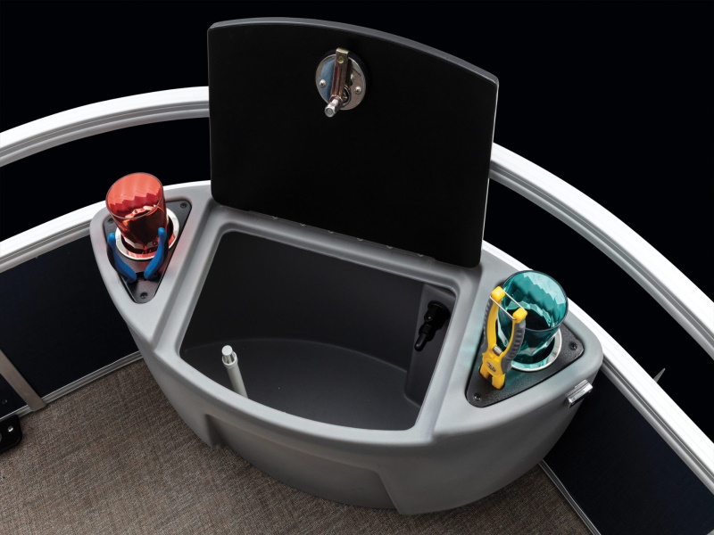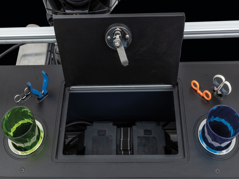 - Port bow 12-gal. (45.42 L) timed aerated livewell & starboard bow battery compartment, both w/ rod & drink holders