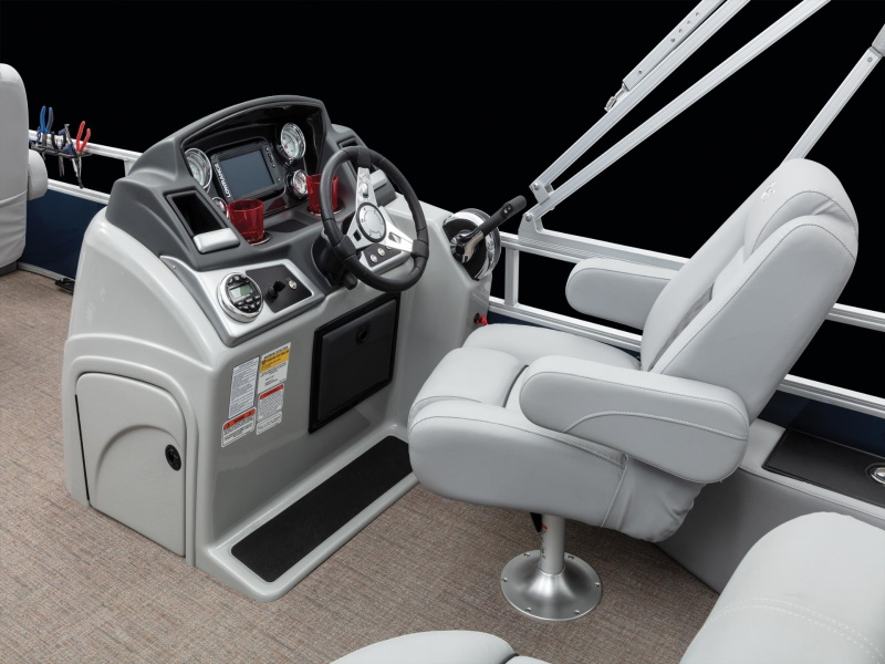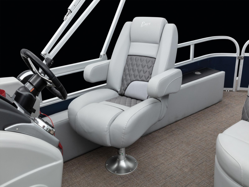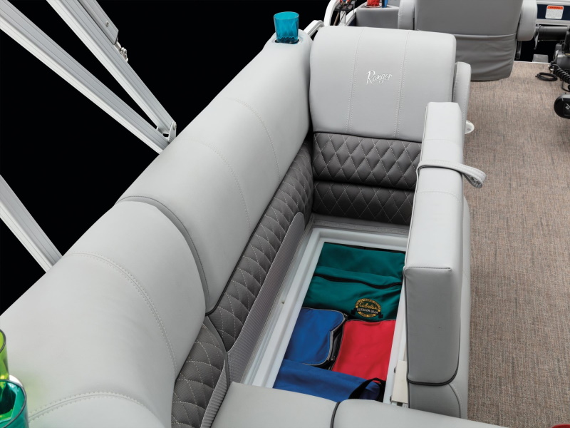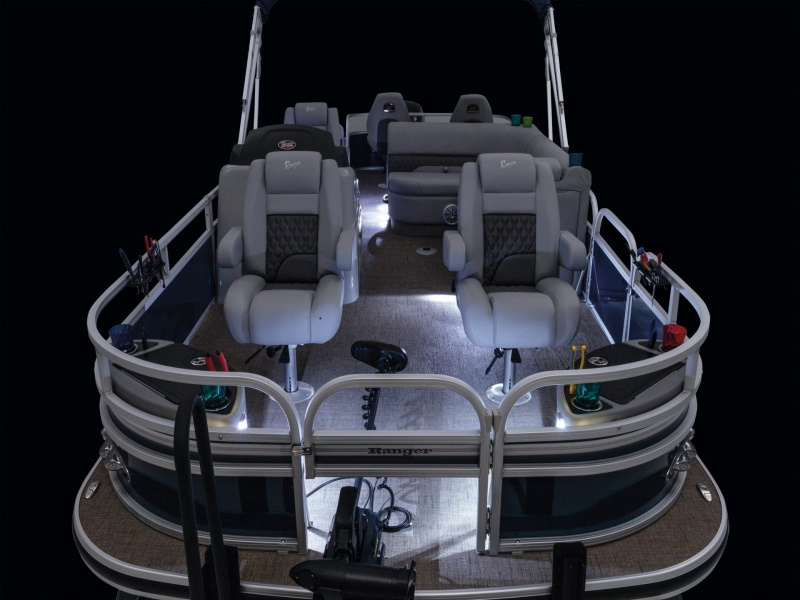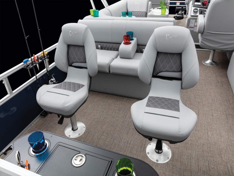 The Ranger® Reata® 220F blends the best qualities of a purpose-built leisure craft with a multitude of fishing-savvy touches. A 7-foot, 6-inch rod box with organizer graces the starboard side while fore and aft livewells keep bait – or your catch – close at hand. In between all this angling goodness is a plush lounge with a pair of rear-facing seats and a captain’s chair with self-leveling arms behind a fiberglass console with a full array of gauges. When it comes to setting the hook or settling down, the 220F is ideally appointed for casting or cruising.