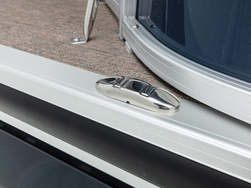 - Stylish deck trim w/ rub rail & highly polished aft corner castings