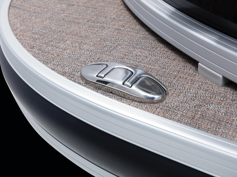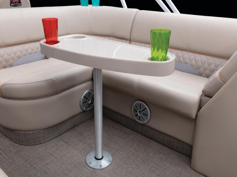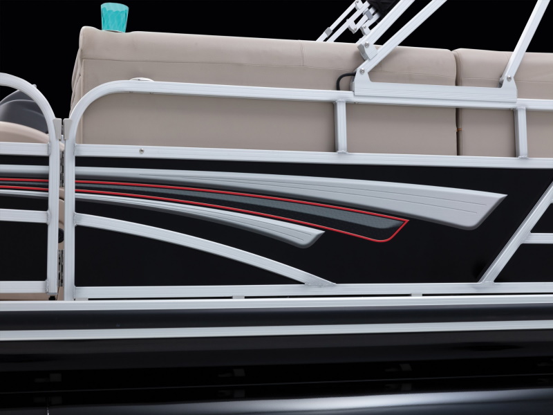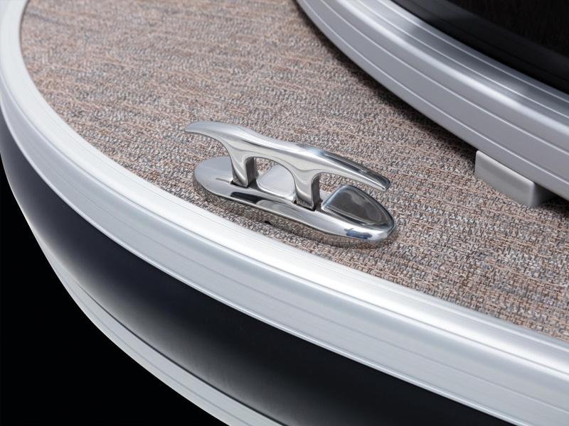 - Stylish deck trim w/ rub rail & highly polished aft corner castings