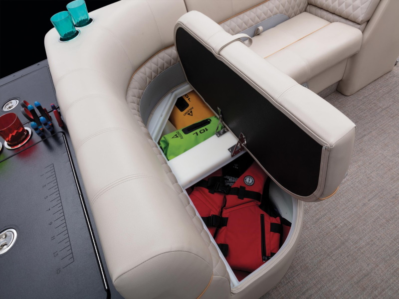 - Midship L-lounge w/ roto-molded, drained storage