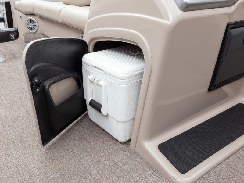 - Enclosed in-console cooler compartment w/ door-mounted molded storage