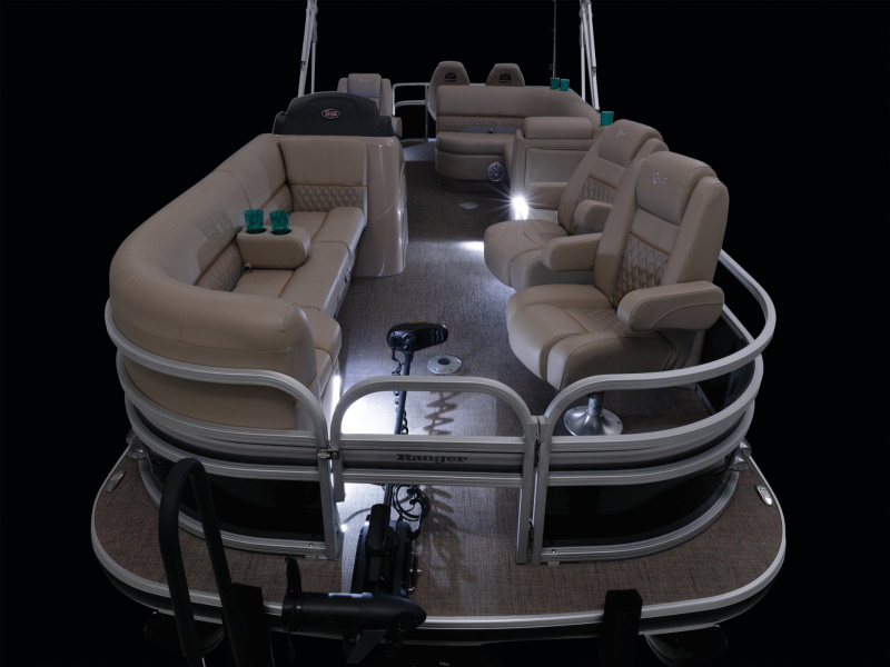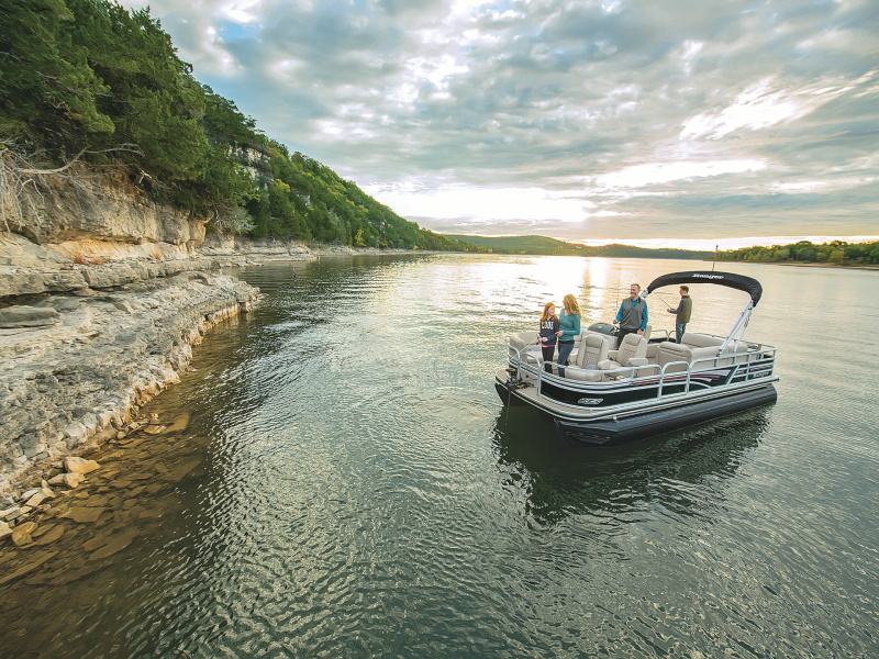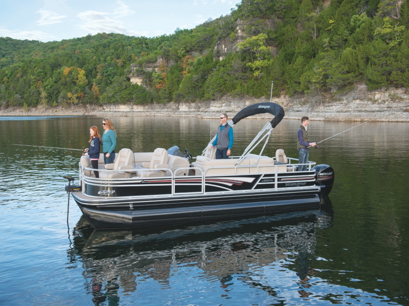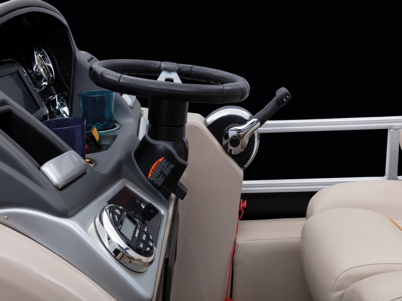 - Easy-to-deploy color-coordinated 11' (2.74 m) Bimini top w/ adjustable hold-down arm, LED lighting, storage pockets & matching protective boot w/ logo