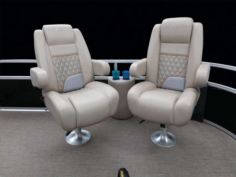 - Adjustable, swiveling & reclining helm chair w/ self-leveling arms & storage pouch
