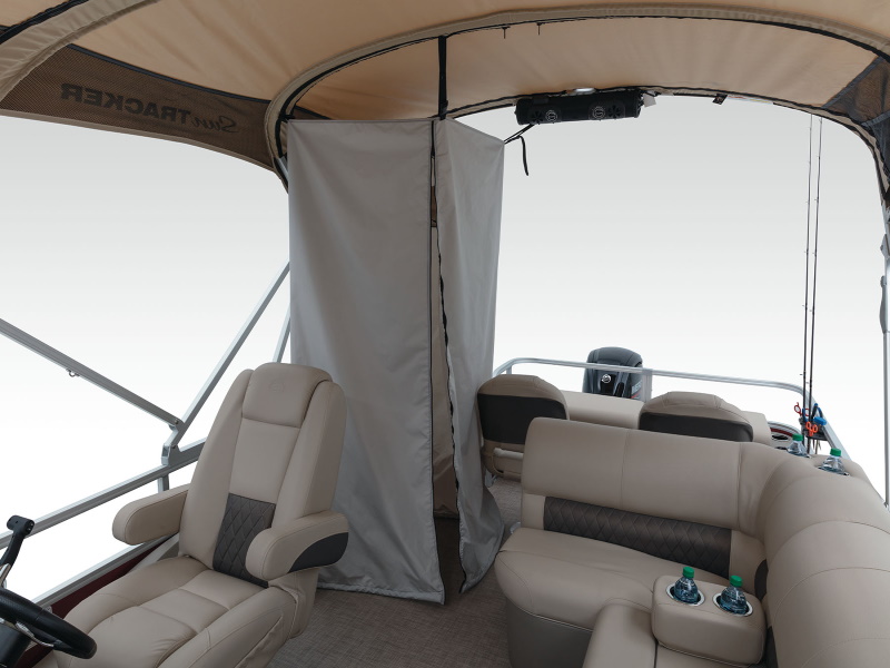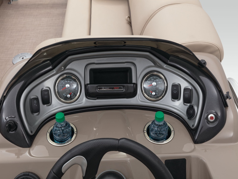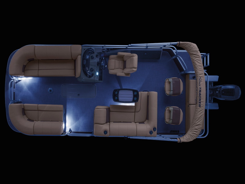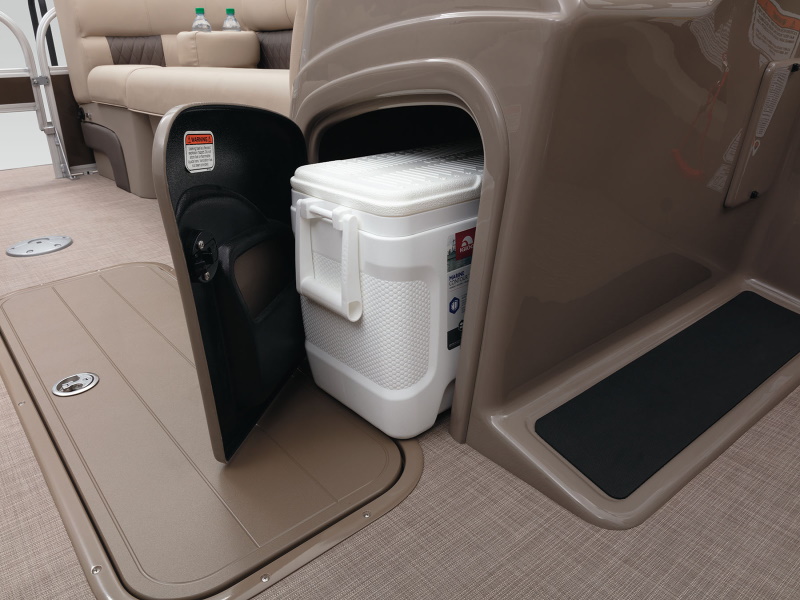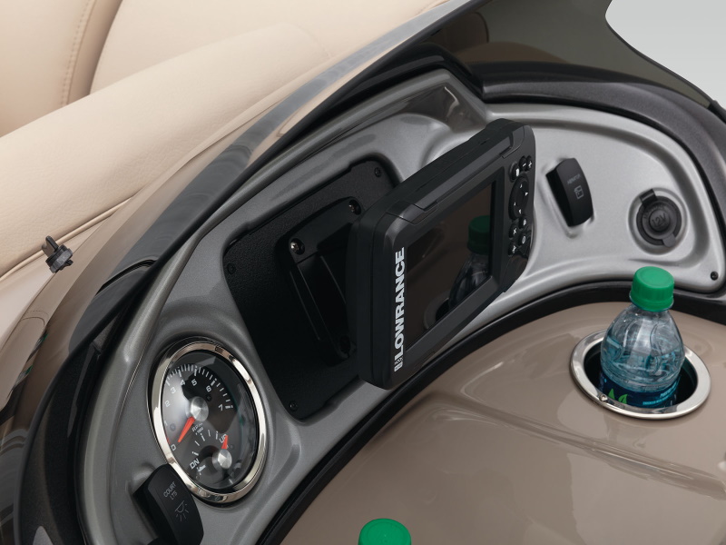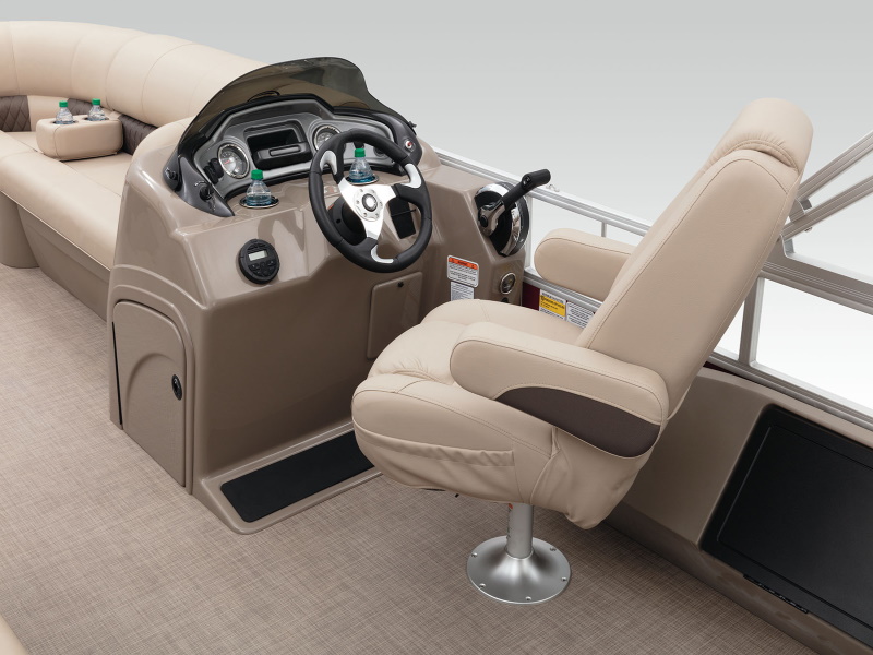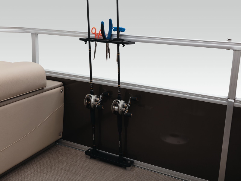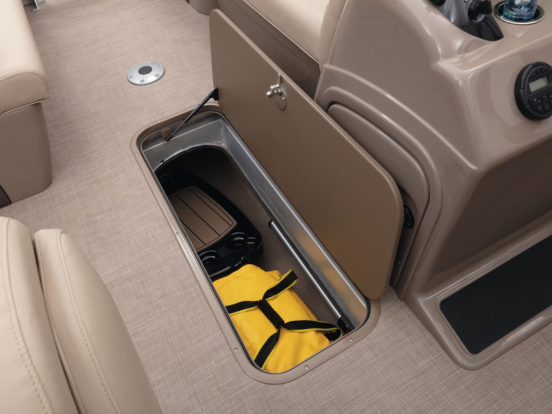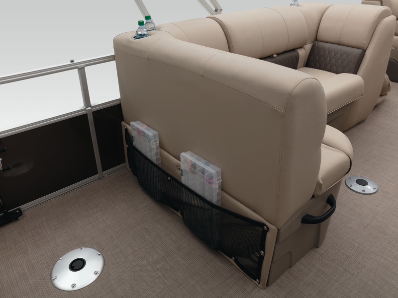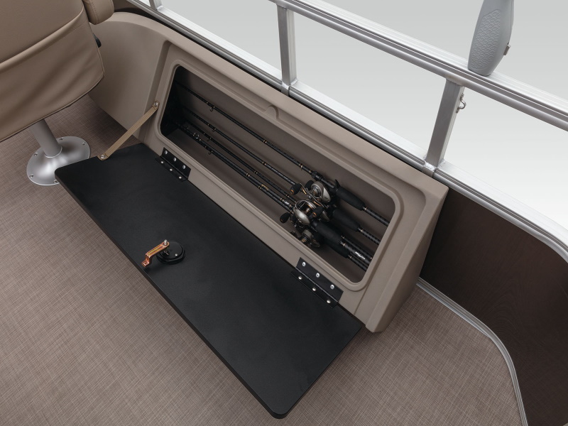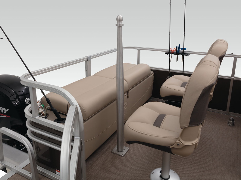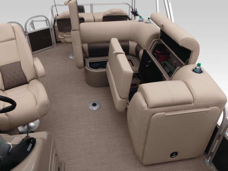 At the bow, it’s a pure party pontoon with dual lounge seating. Midship, it’s perfect for families with an L-lounge that sits under the 11’ Bimini top (which also has a QUICKLIFT® deployment system for easy setup). Aft, it’s all fishing with dual fishing chairs, a 16-gallon livewell and rod storage (including a convenient lockable box). Throughout, STOW MORE™ storage, an in-floor compartment, table, Bazooka® sound system and more are ready to provide convenience and comfort for any activity.