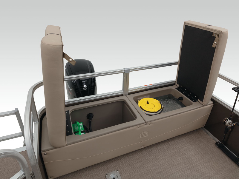 - Aft port 16-gal. (60.57 L) aerated livewell w/removable bait bucket & shutoff valve