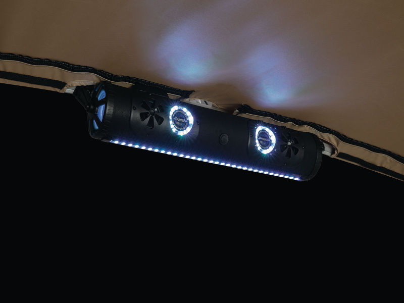 - Bazooka® Party Bar stereo & speakers in the Bimini top
